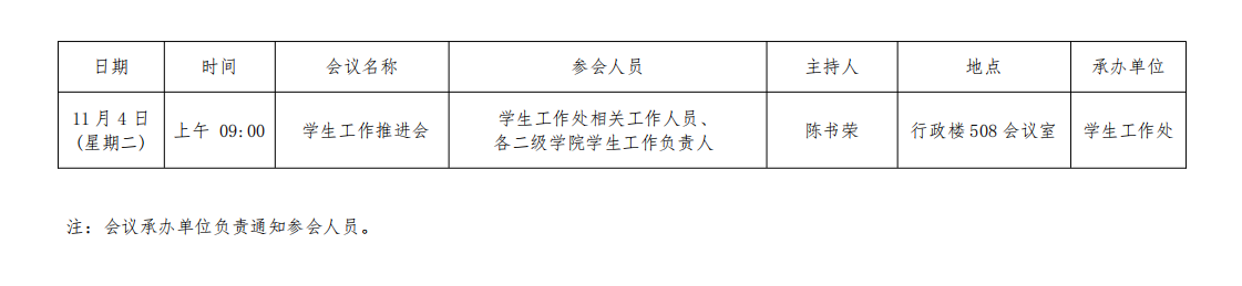 西安交通大学城市学院2025-2026学年第一学期第9周(2025年11月3日至2025年11月9日)主要会议安排