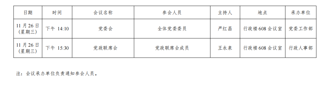 西安交通大学城市学院2025-2026学年第一学期第12周(2025年11月24日至2025年11月30日)主要会议安排