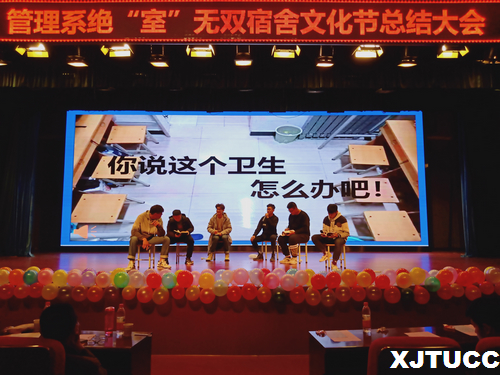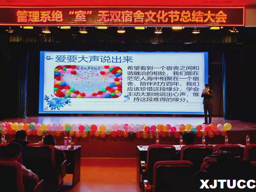 为了进一步创造和谐的校园环境,培养同学团结互助,合作进取的精神,丰富学生的课外生活,西安交通大学城市学院管理系于12月4日晚在教二报告厅举办了管理系绝“室”无双宿舍文化节总结大会。莅临本次大会的老师有:管理系常务副主任冀祥,学生工作主管刘健,团工委书记吴江菊,学工办李璐、乔瑜薇。