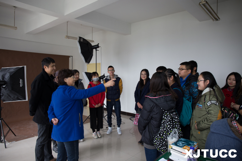 张蓉教授一行先来到了人文系学生的孵化项目IM摄影工作室,认真听取了学生关于工作室基本情况的介绍,在谈到工作室后期规划发展时,张老师提出了许多宝贵的指导建议,鼓励学生要对自己的项目充满信心,大胆尝试新思路、新想法,利用一切有利条件来做好创业实践项目。张老师鼓励前来参观的创新创业爱好者,要积极利用大学宝贵的学习时间,投入到专业课的学习和实践中去。传播学与网络与新媒体专业的学生更要注重实际动手能力的锻炼,只有利用好每一次锻炼的机会,才能把自身练就成专业技术精湛、实际操作能力强的应用型媒体人才。随后,人文系学工办陈杜昊老师就学院创新创业的几项赛事进行了介绍,并动员学生积极参加。