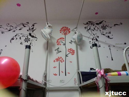 进入宿舍后,干净的地面,整洁的书桌,和谐的氛围在我系学生寝室中展现的淋漓尽致,每个宿舍的装饰都别具风格,有温馨的,有简洁明亮的,有时尚前卫的,也有青春活力的。装扮虽简单,却体现了同学们对于这个温暖港湾深深的爱。同学们利用有限的条件却让宿舍彰显出不一样的色彩,环保的意识体现的尤为明显,多个寝室利用旧物品制作出精美的装饰物,令评委眼前一亮。宿舍的装饰获得史老师的高度评价。