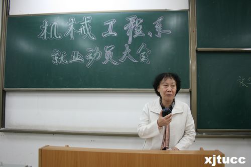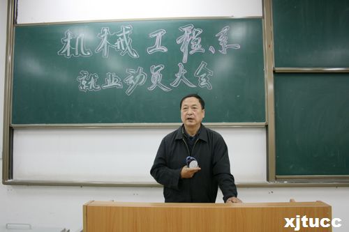会议伊始,机械工程系主任杜彦亭做了讲话。杜老师以SMC公司为例,通过气动元件的市场供求进行了简单的就业分析,同时就目前大学毕业生的收支状况对当下国内经济发展形势进行了剖析。杜老师告诫大家,刚毕业的同学们第一目标应该是继续学习而非积累财富,通过学习继续提升自身、完善自己,用能力实现自我价值。随后,教工党支部书记孙明做了讲话,孙老师建议同学们应将考研放在首要位置;其次,应聘时要详细了解应聘单位,避免上当受骗;第三,要树立正确的职业观。