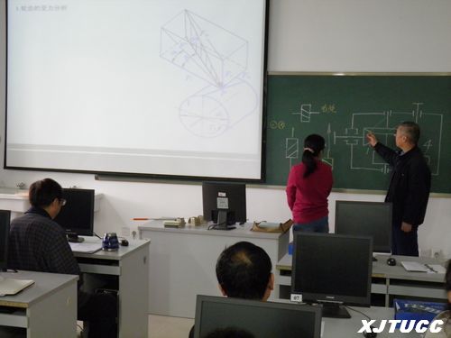 本次活动中,青年教师任晓莉老师对《机械原理及机械设计》课程部分内容进行试讲,并由系主任诸文俊老师、系副主任郑爱平老师、机制专业首席教授温正忠老师等提出改进意见,内容涉及课程知识、讲课思路、课件制作等方面。