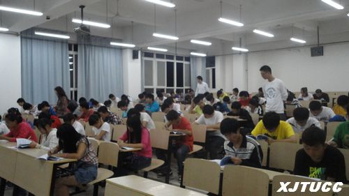 晚19时考试准时开始。系学生会学生干部负责监考及考场纪律、收发试卷等考务工作。系学生工作负责人辛红伟老师、系团工委书记吴昊翔老师、分管新生党建的刘涛老师、王玲老师分别负责各考场巡考工作,确保考试纪律的严肃性。