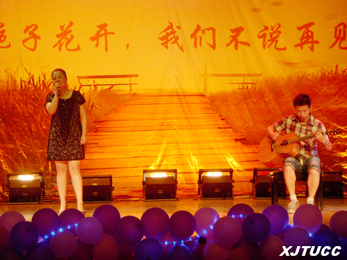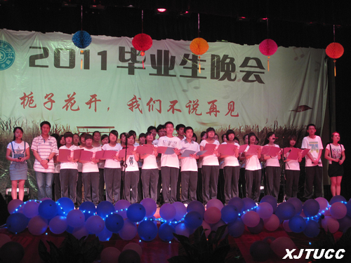 晚会共分:青涩时代、歌舞青春、唱响未来三个章节,将大学生活融入其中,节目内容精彩纷呈,有小品、歌曲串烧、吉他弹唱、民乐、舞蹈、情景剧等多种表演形式。小品《清考风波》形象幽默生动的讲述了女生宿舍的姐妹情谊;互动环节,周绚等四位大一的学生用唯美的歌声和祝福的词句也送上了他们对学长们的美好希望;成琳老师和黄浩翔老师歌曲《干杯朋友》,一唱一弹,铿锵有力而感人肺腑,赢得台下无数掌声;管理001和管理002班的集体朗诵《回望》清纯、回味、感动,在舒缓的音乐下催人泪下;此外,毕业生王颖、马海泉还有08级王超都以学长的身份高歌青春,表达对母校的无限留恋。