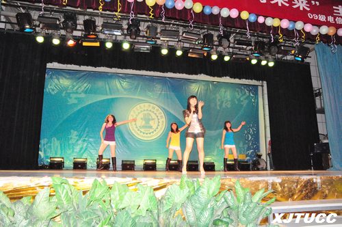 晚会上同学们各展其才,为在场观众奉上了一场艺术饕餮,晚会共分三个篇章:感怀过去、把握现在、畅想未来。在一首优美的英文歌曲《beautiful》中晚会正式拉开了序幕,随后本届校园星光大道总冠军陈卓同学倾情演唱了一首《老男孩》,小品《天龙八部》以幽默的古装角色演绎现代生活,炫酷的发型、搞笑的表情和pose使全场笑声连连,现场互动环节中几位表演轮滑的同学精湛的技艺赢得了同学们的阵阵掌声。在同学们的呼声中,辅导员巩婷老师也登台献歌,使晚会气氛达到高潮。整场晚会持续一个多小时,其中有短而又令人爆笑的话剧,感人而又精彩的小品,清幽而又多姿的舞蹈,时而使人兴奋得拍案叫绝,时而又使人默默流泪,时而使人投入到那悠远的歌声之中,时而又使人回想到那优美的舞姿当中。