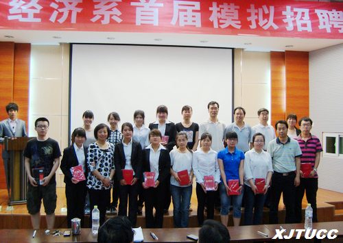 5月17日晚,由应用经济系团工委主办“应用经济系首届模拟招聘会”在学院F100报告厅隆重举行。学院就业指导与校友服务中心主任张学堂老师、院团委副书记程璟老师、牛彦龙老师、应用经济系主任杨建全老师、副主任史冬梅老师及经济系部分任课老师和全体学工办老师参加了这次模拟招聘会。招聘会由经济006班郭子铭同学主持。