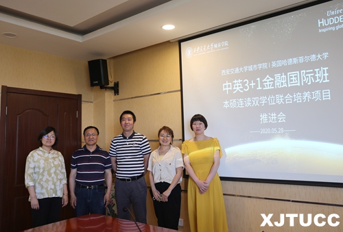5月28日下午,西安交通大学城市学院在行政楼608会议室召开与英国哈德斯菲尔德大学中英国际班国际课程联合培养项目推进会,为2020级新生招生工作做好准备。英国哈德斯菲尔德大学西安办公室负责人杨超,城院中英项目负责人王春波,经济系主任杨健全,主任助理张美丽,经济系办公室任远及国际项目办公室孙晓、冯欣参加会议。
