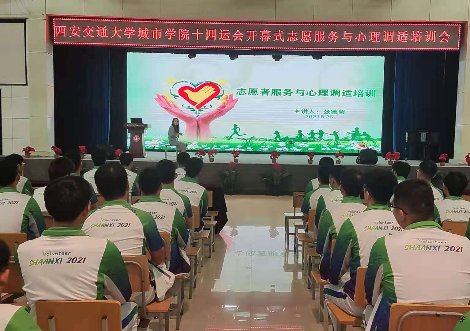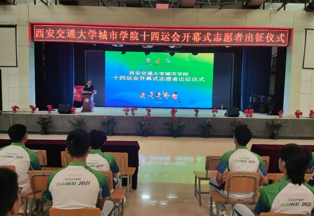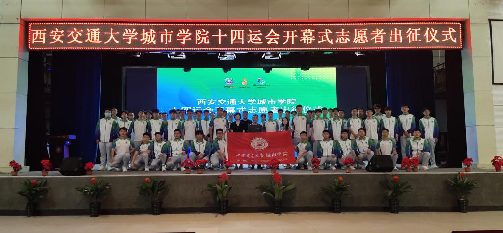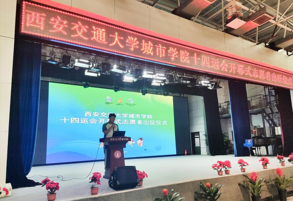 全民全运,同心同行。为助力办赛精彩、参赛出彩、发展添彩的志愿目标,展现我院学子昂扬向上的精神风貌,8月26日上午,西安交通大学城市学院十四运会开幕式志愿者出征仪式于大学生活动中心举行。学生服务中心主任张学堂、团委书记茹静、十四运会志愿者带队老师及开幕式全体志愿者参加仪式。