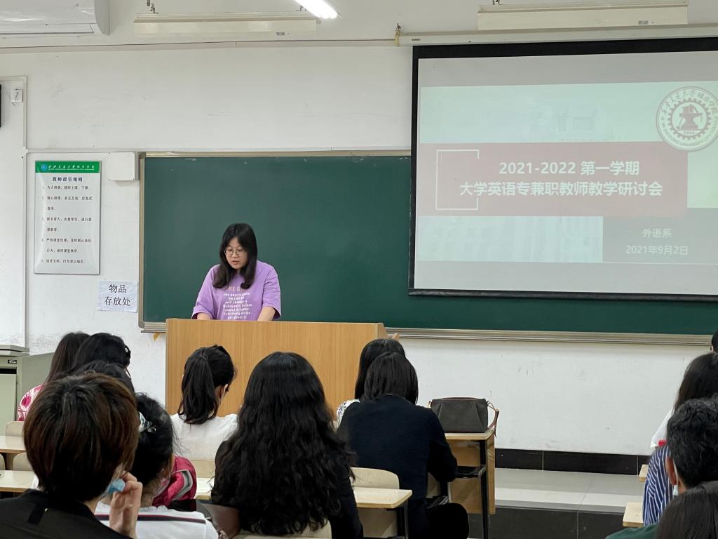 9月2日上午,西安交通大学城市学院外语系在教学楼B319教室召开了大学英语教师教学研讨会,外语系副主任兼大英教研室主任巫奕君副教授主持会议,外语系全体大学英语老师共计50余人参加了此次会议。
