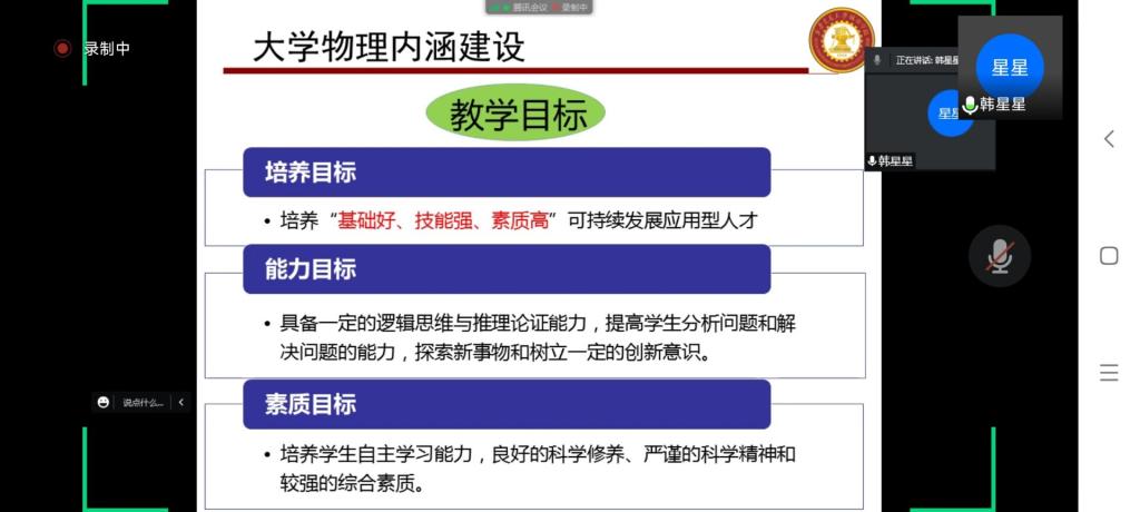 9月8日下午,物理教学部在线上召开本学期工作安排会议。会议由物理教学部主任助理韩星星主持,全体专兼职教师参加了本次会议。