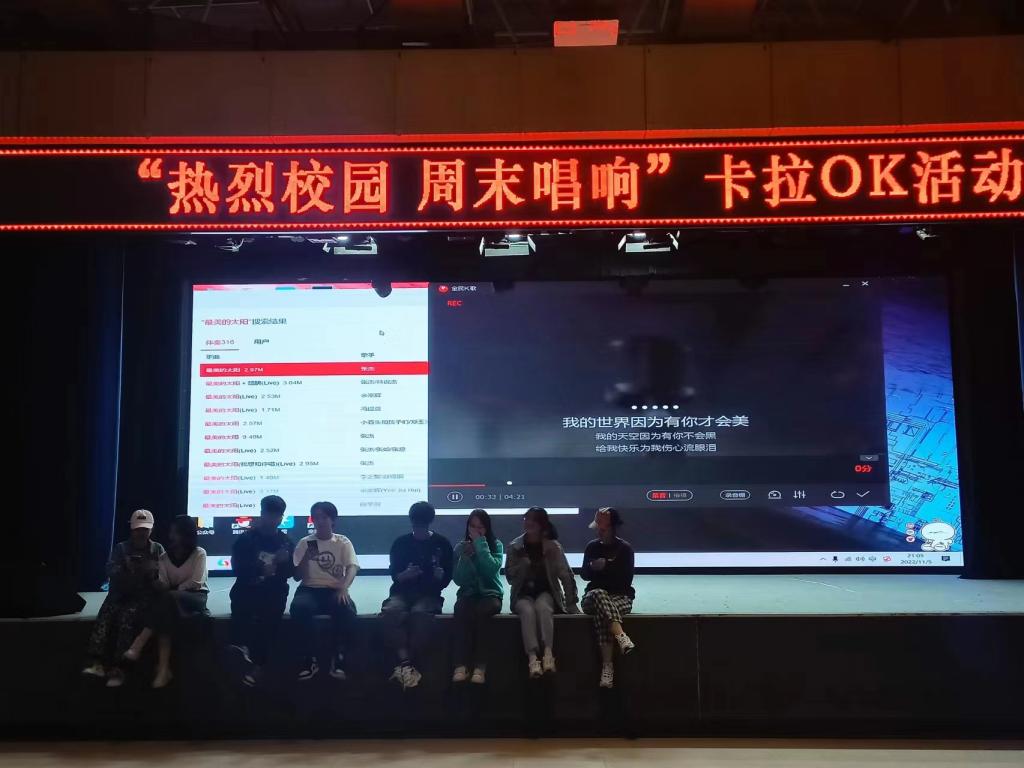 11月5日晚19:00,社团工作部联合大学生艺术文化中心于大学生活动中心举行师生共唱卡拉OK活动,台上同学的精彩演出感染了台下的观众们,越来越多的同学拿过麦克风上舞台唱出自我,让全院师生感受到“家”的温暖。同时,NCBlood说唱社于11月5日晚19:00在操场举行“说唱青春”表演,伴随着说唱的节奏声,现场的氛围也达到了高潮。这个秋夜因为同学们的表演变得更加火热。