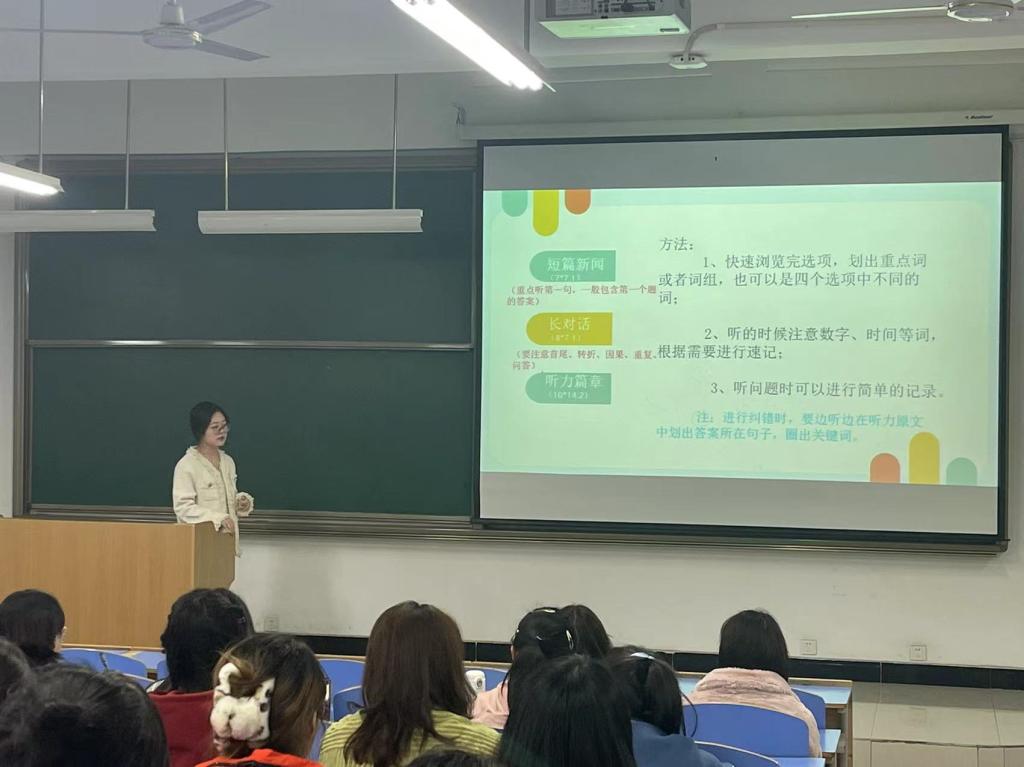 为了缓解学生对即将到来的英语四级和软考的焦虑心情,提高备考效率,掌握正确的学习方法,护理系于11月7日于教二419教室举办了英语四级及软考经验分享交流会。本次分享会邀请了朋辈大使李瑞佳同学以及在四级、软考中获得高分的赵梦琳同学进行经验分享,21级与22级本科生积极参与。