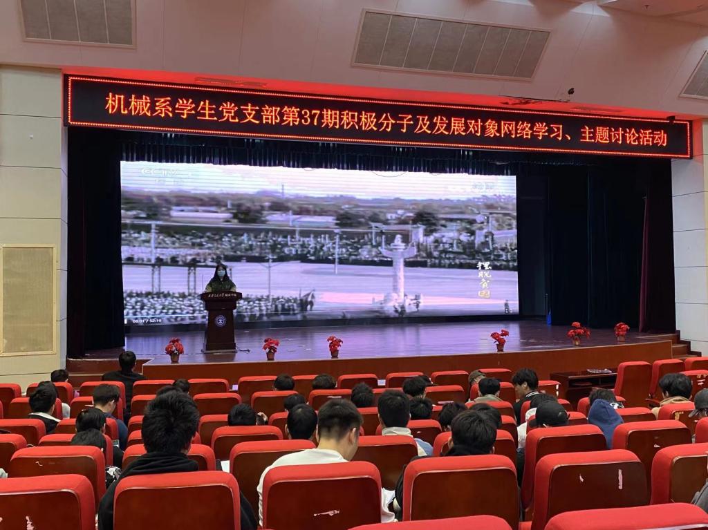11月24日晚,西安交通大学城市学院机械系学生党支部在教二报告厅举行第37期入党积极分子及发展对象党课网络学习、主题讨论活动,机械系学生党支部第37期入党积极分子、发展对象及部分学生党员参加了本次网络学习、主题讨论活动。