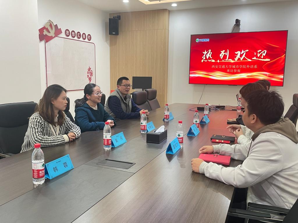 4月4日,在系副主任徐素云的带领下,主任助理吴夫迎、办公室副主任关天骄、学生工作负责人吴丹、毕业班辅导员韩蓉先后走访了陕西文都教育科技有限公司、国新健康保障服务有限公司陕西分公司两家企业,徐素云详细介绍了外语系的基本情况,专业特色和就业情况,希望加强院校合作以共享资源,提高人才培养质量,促进学生高质量就业。并针对外语专业就业前景讲了自己的想法,就今后两方深入开展交流表达意愿,共建学生实习实践基地。陕西文都教育科技有限公司西北区域负责人杨波谈到,企业的用人需求与英语、商务英语专业非常匹配,欢迎学生从实习做起,深入了解企业文化,探索适合自己的职业发展路径。国新健康保障服务有限公司陕西分公司负责人李庆阳在交流中分享了自己的创业历程,希望学外语的同学能够利用语言优势,打开“外语+”的合作思路,寻求更广大的就业空间。