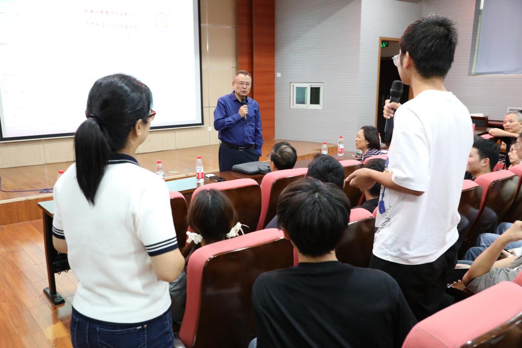 王教授详细介绍了前十届全国大学生机械创新设计大赛的基本情况以及第十届大赛全国评审情况,向在座师生展示了珍贵的历届参赛优秀作品,并对第十一届大赛通知安排、主题及内容作了深度解析,指出本届大赛选题的构思方法、设计途径、注重方向及容易出现的问题,希望参与师生准确把握大赛主题,以创新为大赛永恒方向,加强动手能力培养与工程实践训练。现场气氛浓烈,学生踊跃发言提问,王教授均进行了耐心的解答。