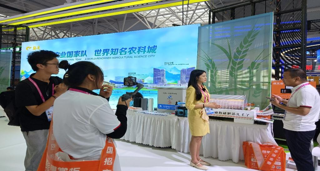 在农高会现场,大学生记者们聚焦西安、汉中、榆林、宝鸡等地市展区以及山东、广东、海南等各省区的特色农产品进行现场报道。他们积极投入,采访扎实,充分发挥在学校所学的航拍、摄像、出镜、剪辑等技能,以专业知识讲好三农故事,助力乡村振兴,展现了西安交大城市学院学子的专业风采。