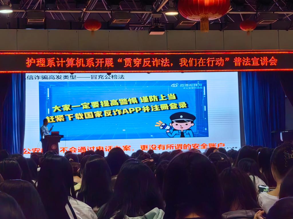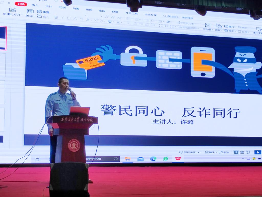 为了进一步增强大学生反诈意识,避免电信诈骗的发生,维护同学们的财产权益,西安交通大学城市学院护理系联合计算机系于9月24日特邀咸阳市公安局渭城分局许超同志为同学们普及防诈骗知识,在大学生活动中心举办“贯穿反诈法,我们在行动”主题讲座。