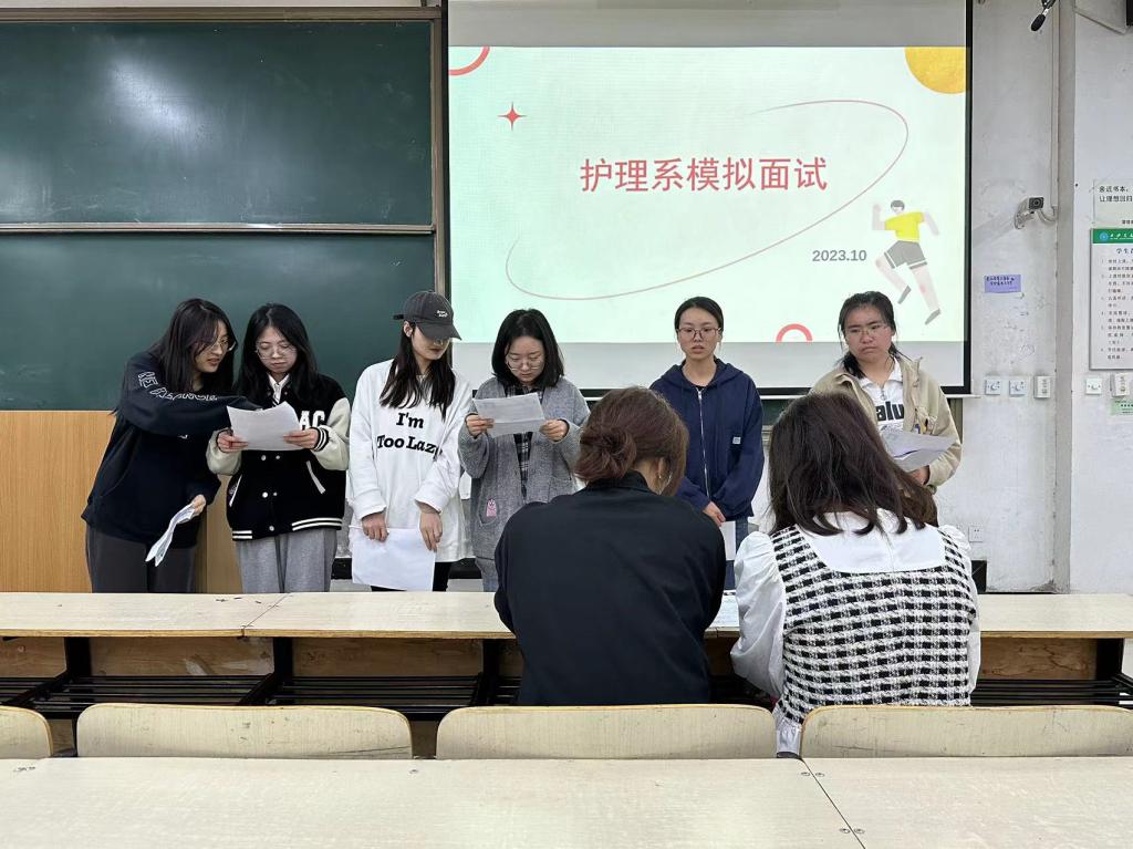 本次活动主要面向即将步入实习岗位的护理系22级专升本同学。活动中,由护理系学生工作主管王娇丹及护理系辅导员黄菲菲担任模拟面试活动评委并进行指导,由护理系团工委书记张妙寒及护理系辅导员董鑫行对同学们的简历进行诊断。