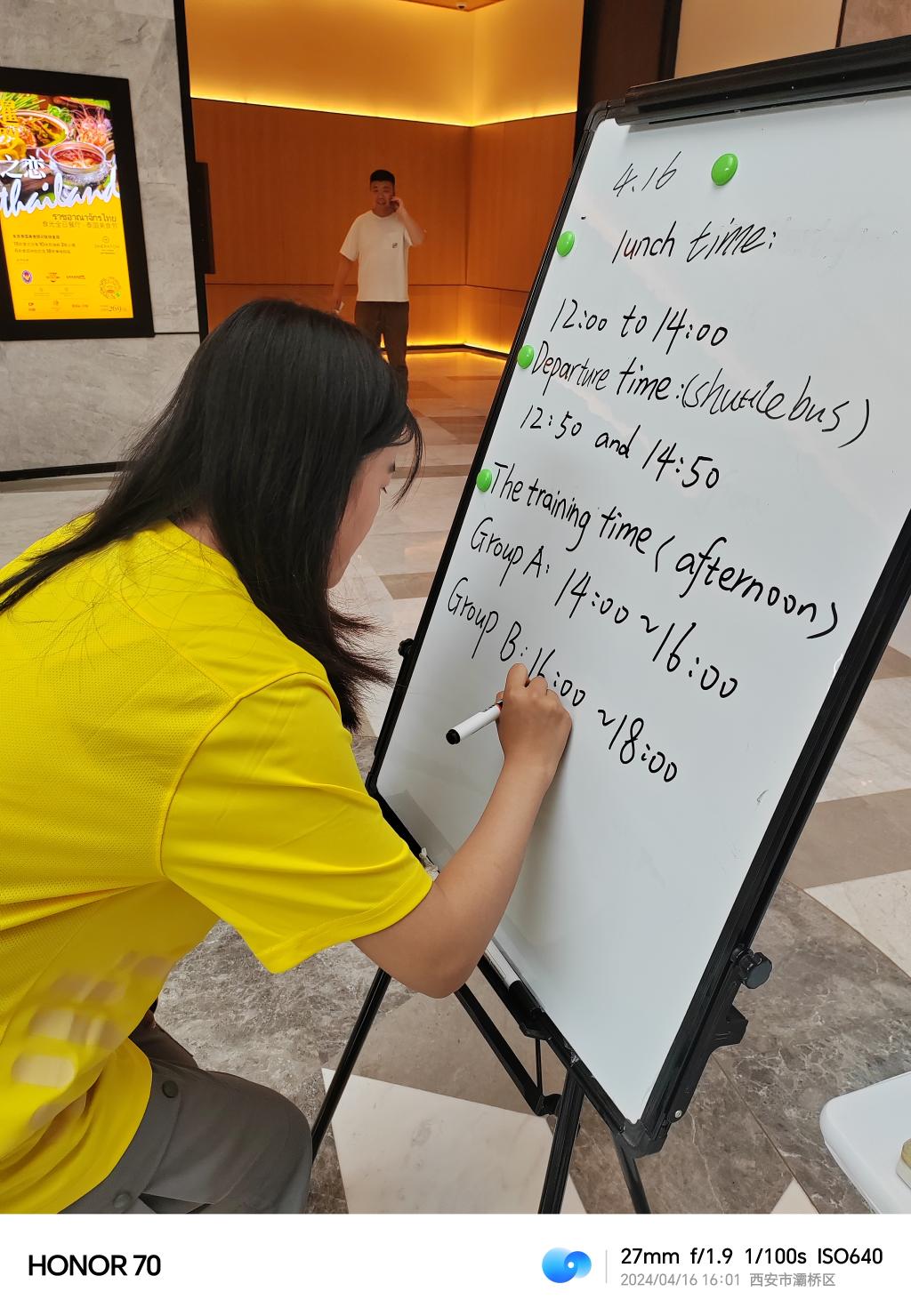 在偌大的奥体中心随处可见我校志愿者忙碌的身影,他们身着靓丽的黄色T恤,亲切地被大家称呼为“小黄人”。志愿者们随时守候,他们将坚守、奉献与热情的脚步印在西安奥体中心的每个角落。