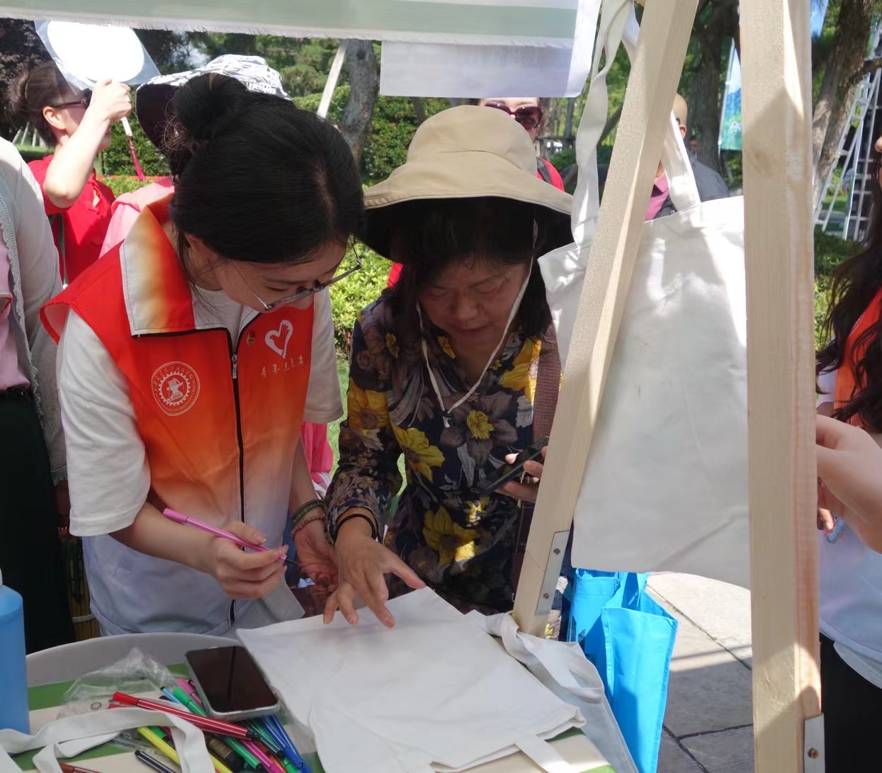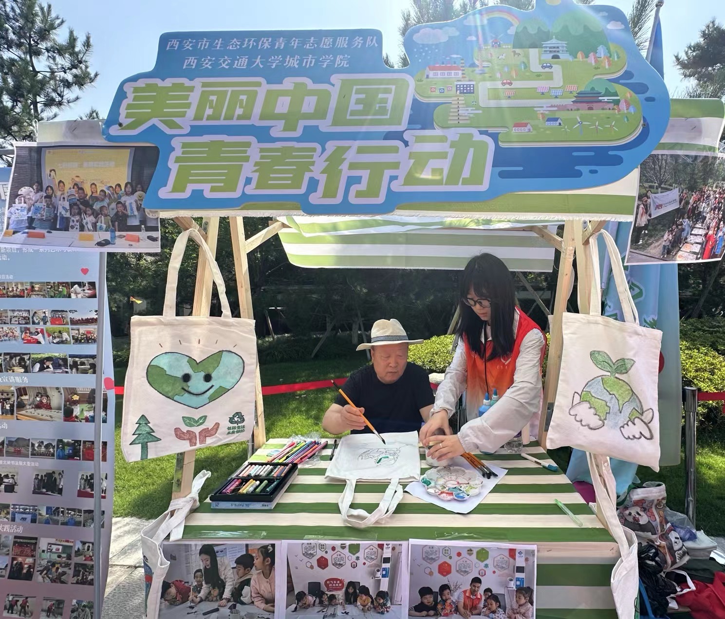 手绘环保袋,绿色“袋”言爱。城院青年志愿者将以此次活动为契机,动员更多青年参与生态环境保护行动中,自觉践行绿色生活方式,为全面推进美丽西安建设凝聚志愿力量。