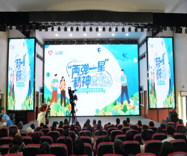 “两弹一星”宣讲团的活动同样精彩纷呈。荆甜同学首先通过趣味问答的形式,让师生们了解了党领导下的中国核工业发展历程,展示了我国科技工作者在“两弹一星”研制过程中自力更生、艰苦奋斗、勇于创新、无私奉献的崇高精神。王玉茹同学进一步讲解了“两弹一星”精神在当代的深远意义,她强调当代大学生应该树立正确的价值观,将个人的利益放在国家和人民的利益之后,为国家和人民的事业奉献自己的青春和才华。