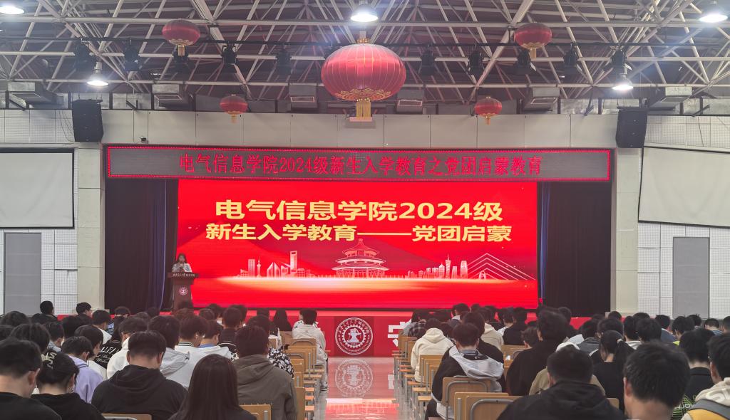 为加强理想信念教育、深化2024级新生对党团知识的理解,引领新生积极向党团组织靠拢,厚植爱国情怀,电气信息学院于10月24日中午在大学生活动中心三楼召开新生入学教育之党团启蒙教育。本次新生入学教育由电气信息学院学生第一党支部书记王姣、团工委书记马麒淇主讲,电气信息学院2024级全体新生参与了此次活动。