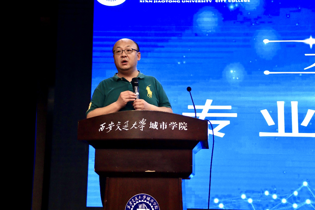 接下来,两个专业负责人进行专业介绍。丁凰老师从培养需求、专业方向、课程安排及特点、就业方向等几个方面简要介绍计算机科学与技术专业。毕鹏老师则从师资力量、职业发展方向、就业方向等方面,阐述软件工程专业。他以生活实例为载体,为同学们介绍了软件工程专业培养体系、软件工程未来发展及就业等内容。
