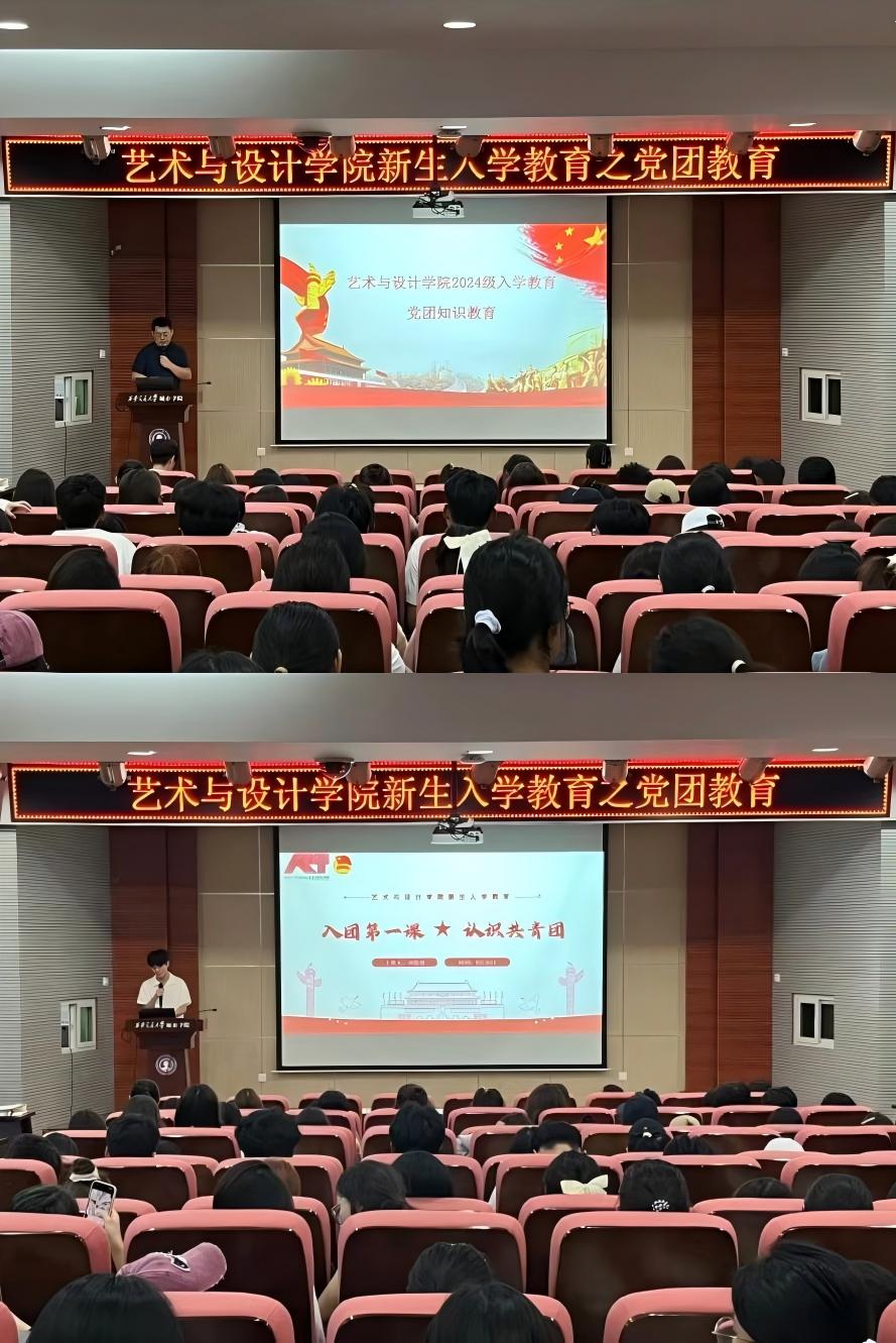 为引导新生树立正确的政治立场,增强党团意识,9月26日在F100教室开展新生入学系列教育—党团知识教育。首先,艺术与设计学院学生党支部书记李成从怎样认识党,如何加入党向新生讲述党的基础知识,并从“态度,习惯,感恩,传承”八字教育理念,号召同学们不仅从思想上入党,更要在行动中入党。团工委书记刘牧原通过介绍何为共青团,共青团的由来、发展历程、核心思想。他强调团是党的坚实后备军,党旗所指便是团旗所向。提出广大青年应积极投身实践活动与志愿服务中去,在实践中展示自己,提升能力,取得进步。