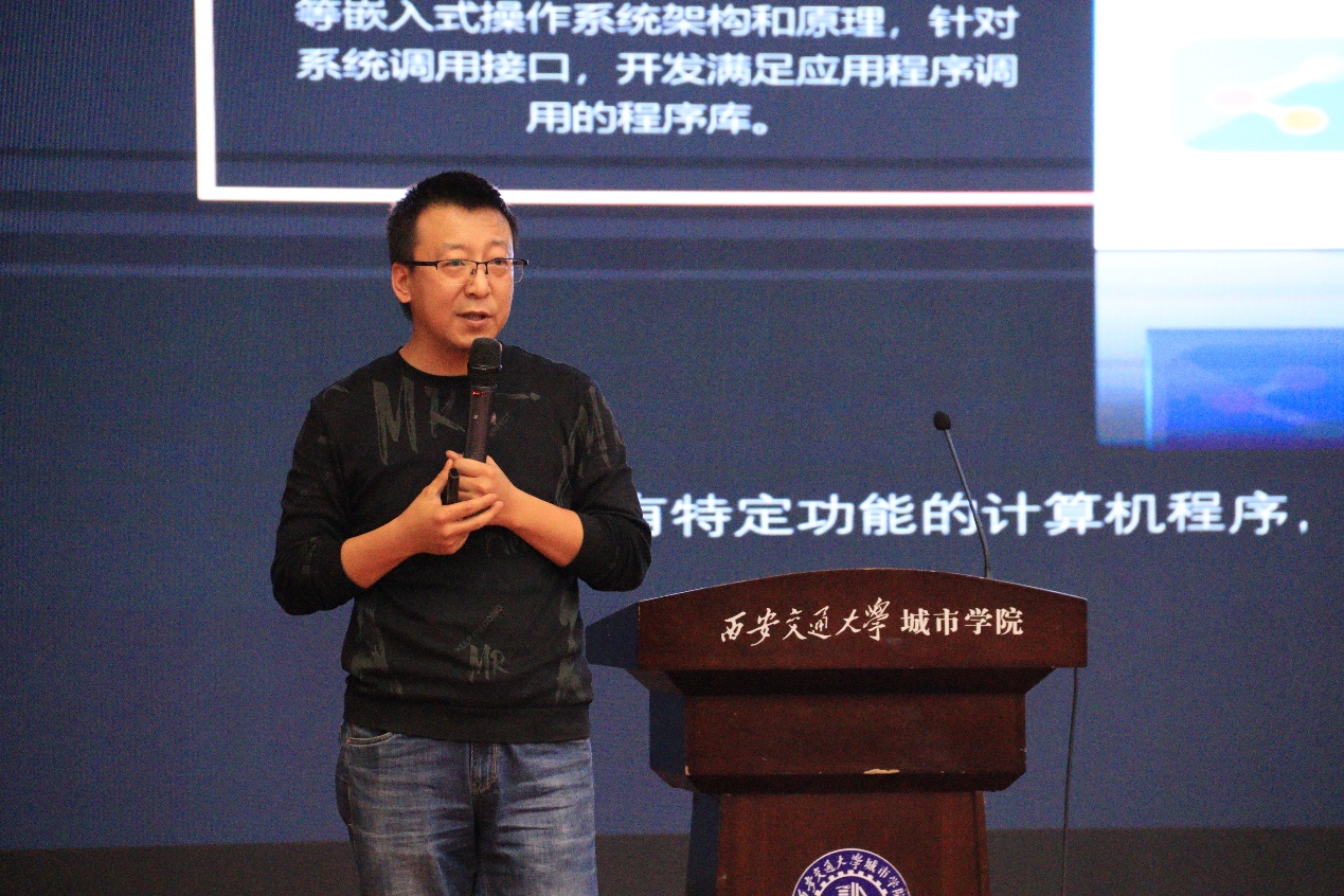 西安粤嵌科技嵌入式教学总监孙腾详细介绍了物联网工程的专业知识,孙老师将物联网在日常生活中的应用与其相关技术架构相结合,让同学们对物联网有了更明确的认知。同时他希望同学们在大学四年里积极参加各类赛事,为未来的就业打下坚实的基础。