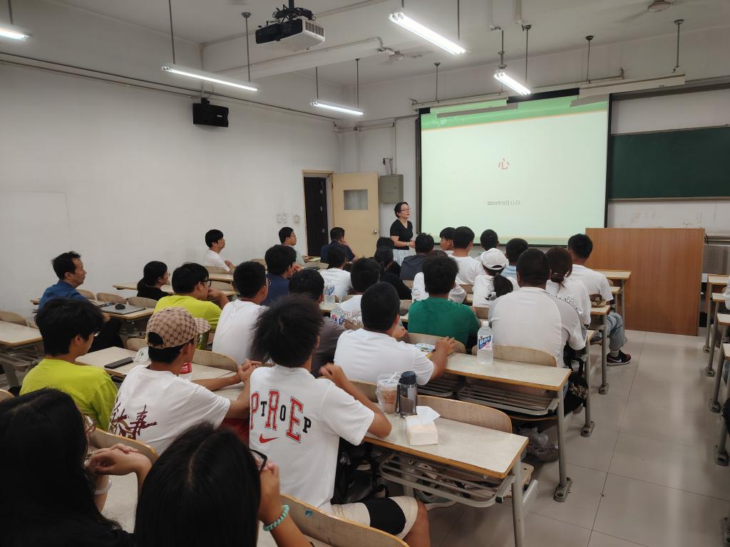 在心理健康教育中,来涛结合多年学生工作经历从大学身份转变、大学生活心理变化等入手,以大量的案例展示为铺垫,深入浅出地剖析大学生初入大学在心理变化、人际关系、行为习惯等方面存在的问题和隐患,为新生们讲解了自我认识、情绪能力、压力管理、生涯探索、宿舍人际关系和导生关系等相关心理健康知识。他提醒同学们注重关注心理和情绪上的变化,及时通过自助或寻求他助的方式解决问题。