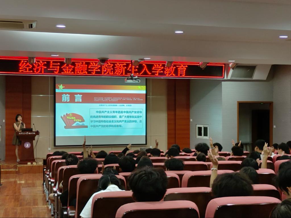 经济与金融学院于9月11日在F100召开2024级新生入学教育之党团启蒙教育,本次会议由经济与金融学院学生党支部书记廉宇婷、团工委书记蒋美一帆主讲,2024级全体新生参加。