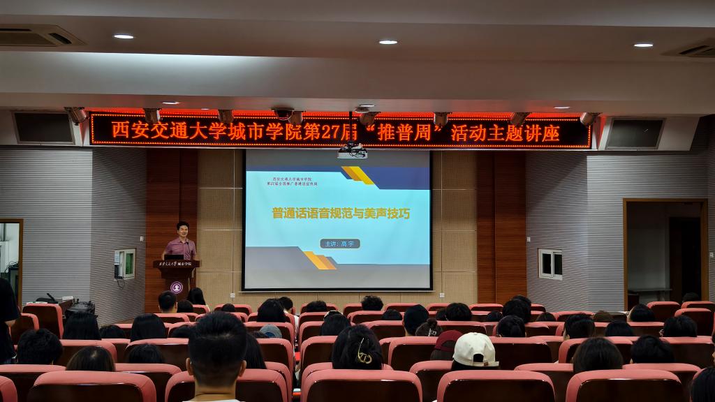 近日,学校紧紧围绕本届推普周“加大推普力度,筑牢强国语言基石”的活动主题,积极开展推普活动,本次讲座是西安交通大学城市学院推普周系列活动之一。学校将以推普周为契机,加大国家通用语言文字推广力度,为教育强国建设和新时代语言文字事业高质量发展贡献力量。