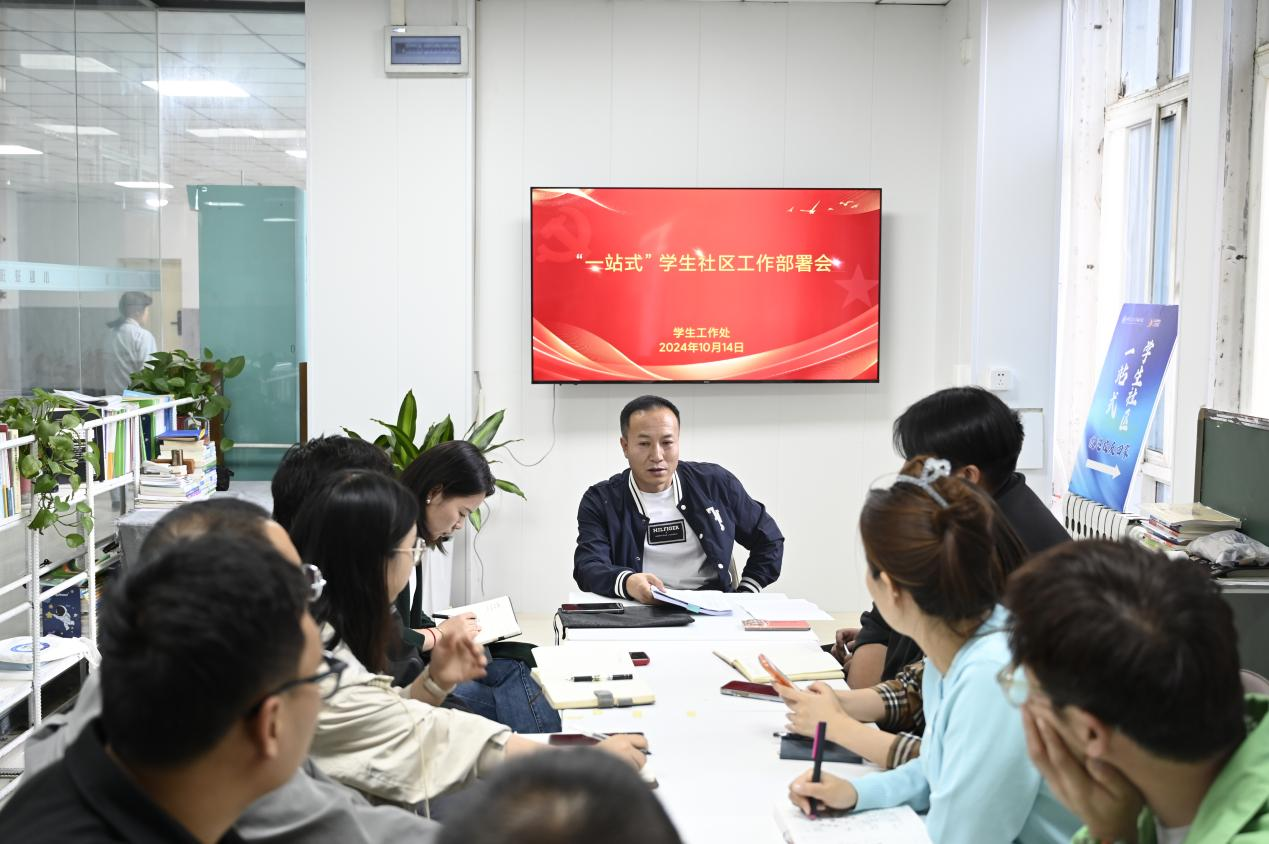 为持续推进“一站式”学生社区高质量建设,10月14日,学生工作处召开“一站式”学生社区建设现场办公专题会。学生工作处副处长张福全、学生处教育管理科副科长吴江菊、计算机学院学工负责人崔佳楠、土木建筑工程学院学工负责人李辉及社区全体网格员参加会议。