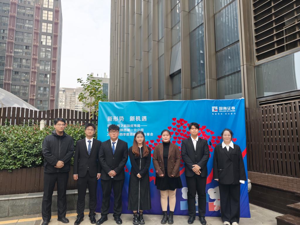 为积极探索校企党建共建新模式,进一步推进校企合作育人,推动产学研深度融合,提升党建育人质量和融合式特色党建成效,11月10日,经济与金融学院学生党支部部分学生党员在党支部书记廉宇婷和组织委员杨静怡的带领下,赴国海证券陕西第一分公司参加2024年四季度高端投研分享会,深入开展校企党建交流工作。