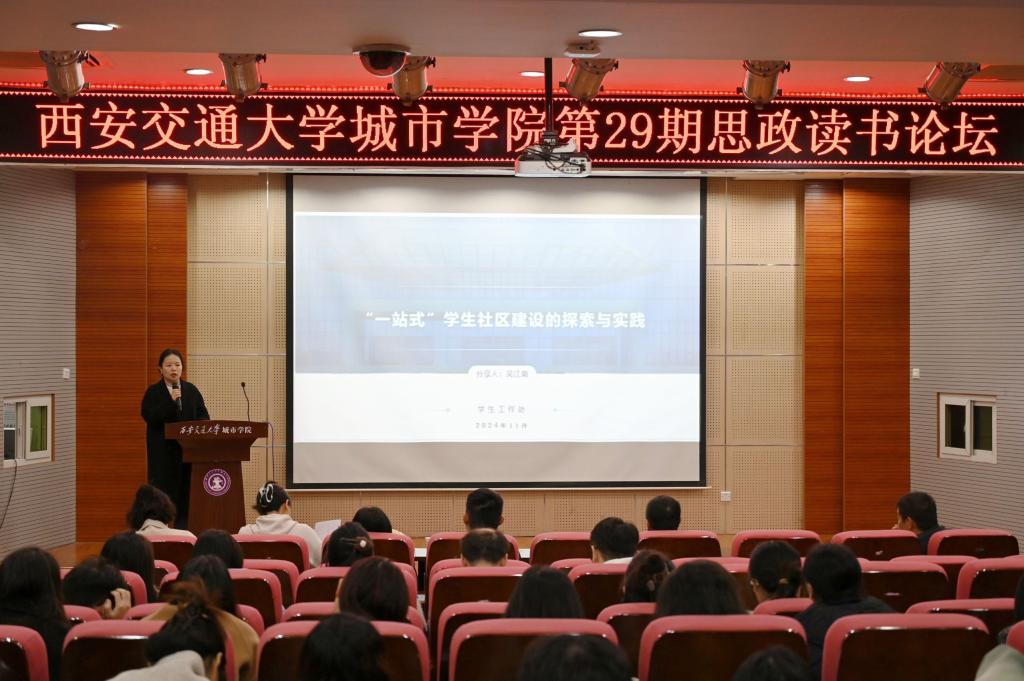 学生工作处教育管理科副科长吴江菊围绕“一站式学生社区建设中的探索与实践”进行分享。她介绍了“一站式”学生社区建设的背景,强调其打破学院、专业、年级甚至师生界限的特点。她阐述了社区在党建引领、队伍入住、领导力量下沉、服务育人、平台下沉等多方面的实践举措,展示了社区在育人方面的积极探索和成效。