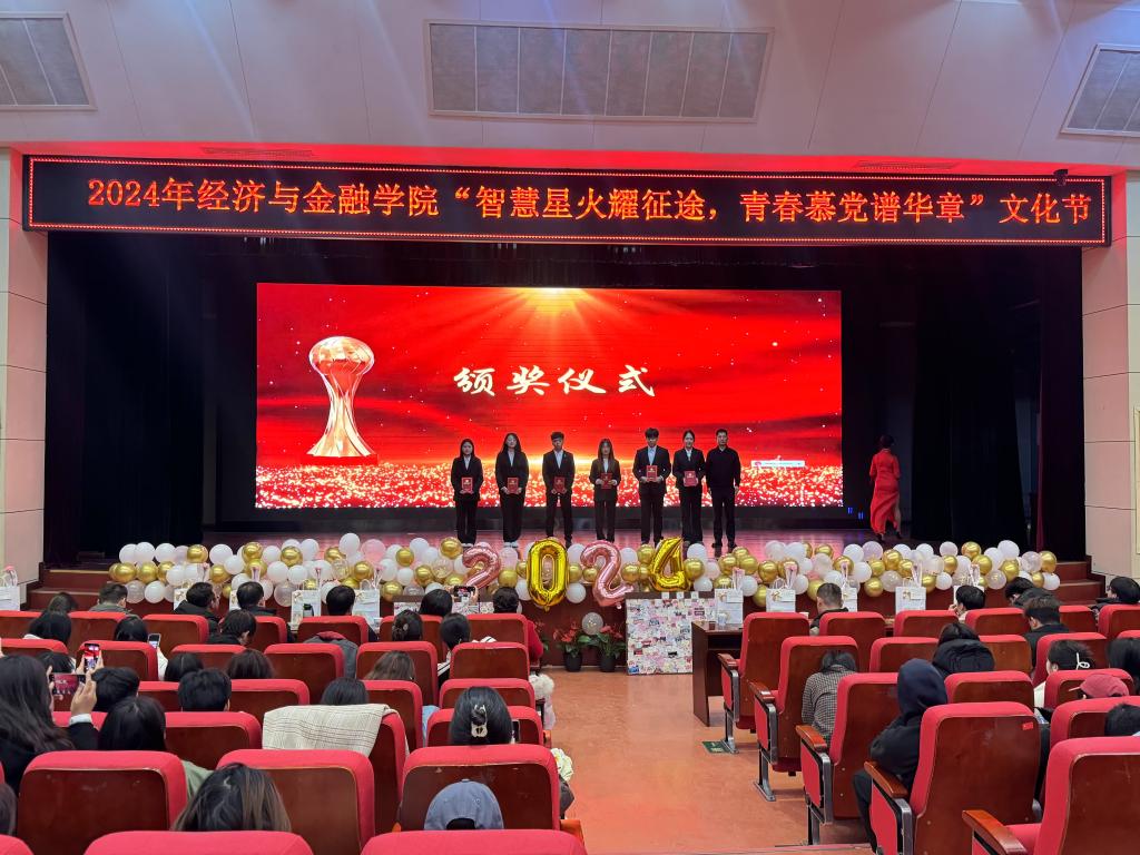 此次活动历时一个月,经济与金融学院从线上线下分别开展“青春共绘,寝室情深”公众号投稿、“和美之屋,最美‘宿’颜”最美宿舍评选、“活力青春,快乐运动”趣味运动会、“生命无彩排,防患于未然”对对碰知识竞赛、“追梦你我,扬帆起航”心愿墙、文化节启动仪式和学业帮扶等一系列活动,通过加强学风建设,经济与金融学院学生党支部成员及朋辈大使进班为低年级学生学习问题答疑解惑,推进英语晨读日常化、晚自习练考常态化,聚焦低年级学生良好学习习惯养成,为发挥榜样力量做表率。通过前期活动兴起了尚德笃学、求真务实的良好学习环境,并积极响应学校关于进一步加强“一站式”学生社区建设的重要指示,切实发挥“一站式”学生社区育人功能。本次文化节汇报演出由“兴学篇——践博学之风,谱经金华章”“尚舍篇——共筑雅舍韵,同辉青春梦”和“展望篇——展望未来景,拼搏今日图”三个篇章组成。伴着宣传片《我们正青春》和西迁国学社的《十二风华鉴》活动拉开帷幕,学生会主席贠萌昊同学对文化节情况进行了工作总结汇报。主题演讲《以青春之名,许国以行》、微党课《悟空奇缘——黑神话探索之旅》使同学们深入学习红色文化;武术表演《剑影诗韵,墨舞风华》使大家在力与美的交织中,感受传统与现代、思想与行动的完美契合。任海鑫的优秀宿舍故事使同学们感受到青春活力与奋斗精神,倾听他们如何在宿舍生活里践行“踔厉奋发、勇毅前行”。