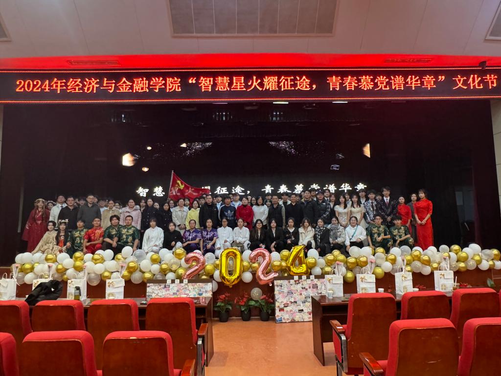 为丰富学生的校园生活,营造积极向上的学习氛围,传承红色基因,经济与金融学院于11月28日在教二报告厅举办“智慧星火耀征途,青春慕党谱华章”文化节。莅临本次活动的嘉宾有校学生工作处处长辛红伟、体育教学部主任助理周帅、体育教学部教工党支部组织委员李严、体育教学部教师薛俊杰、传媒学院主任助理刘敏涛、土木建筑工程学院学生工作负责人李辉、计算机学院学生工作负责人崔佳楠、物理与新能源学院学生工作负责人樊超、管理学院学生第二党支部书记李璐及各学院团工委书记。经济与金融学院副院长白丹及部分教师出席,本次晚会由赵乐琪、王蒙恩、李嘉怡、周学亮四位同学主持。