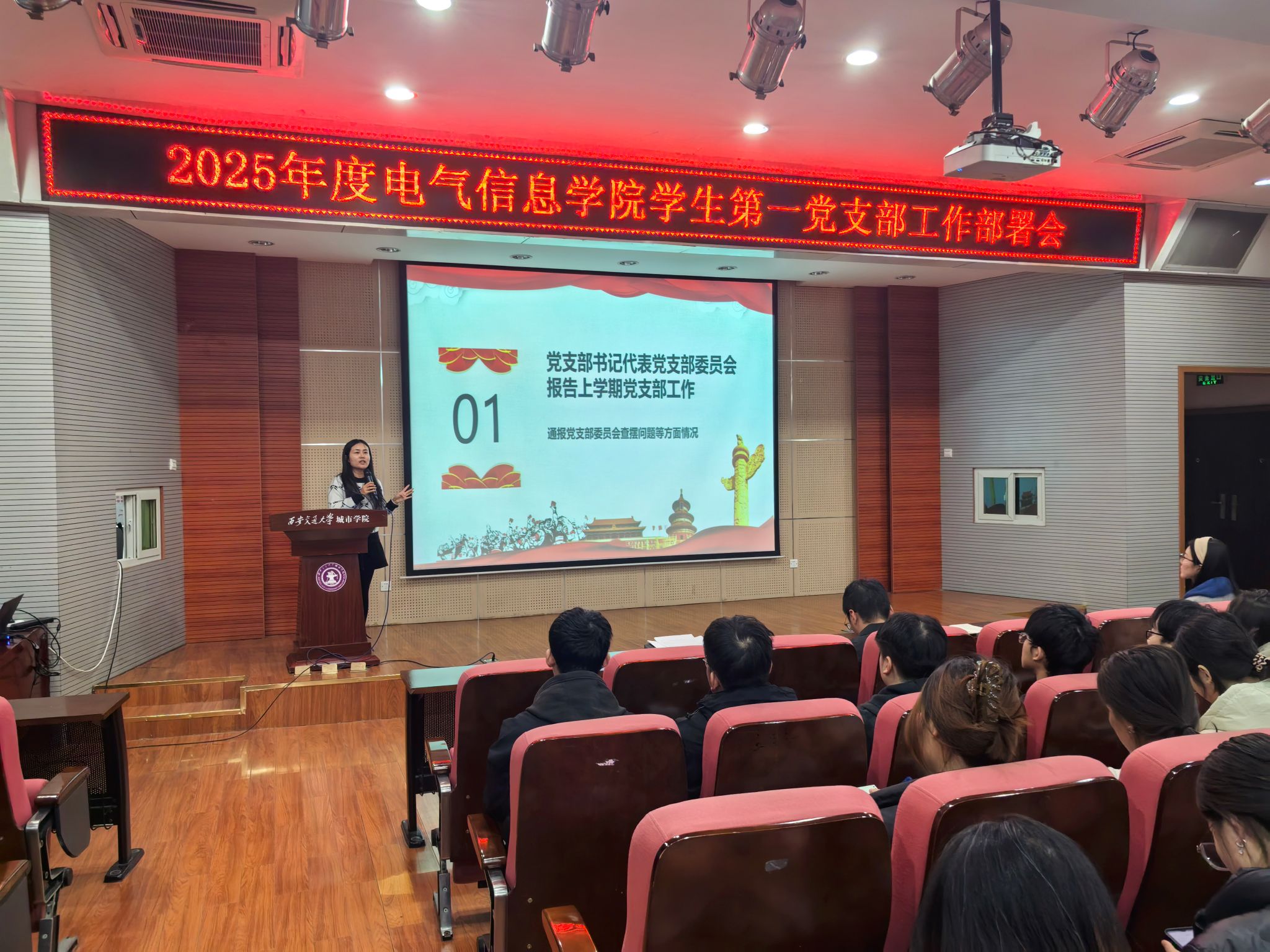 为进一步加强电气信息学院学生第一党支部工作,强化党员思想政治教育,电气信息学院学生第一党支部于2月28日在F100报告厅召开2025年电气信息学院学生第一党支部工作部署会。电气信息学院学生第一党支部书记王姣、组织委员史甜甜、宣传委员马佳辰及支部全体党员出席本次大会。本次会议由支部宣传委员马佳辰主持。