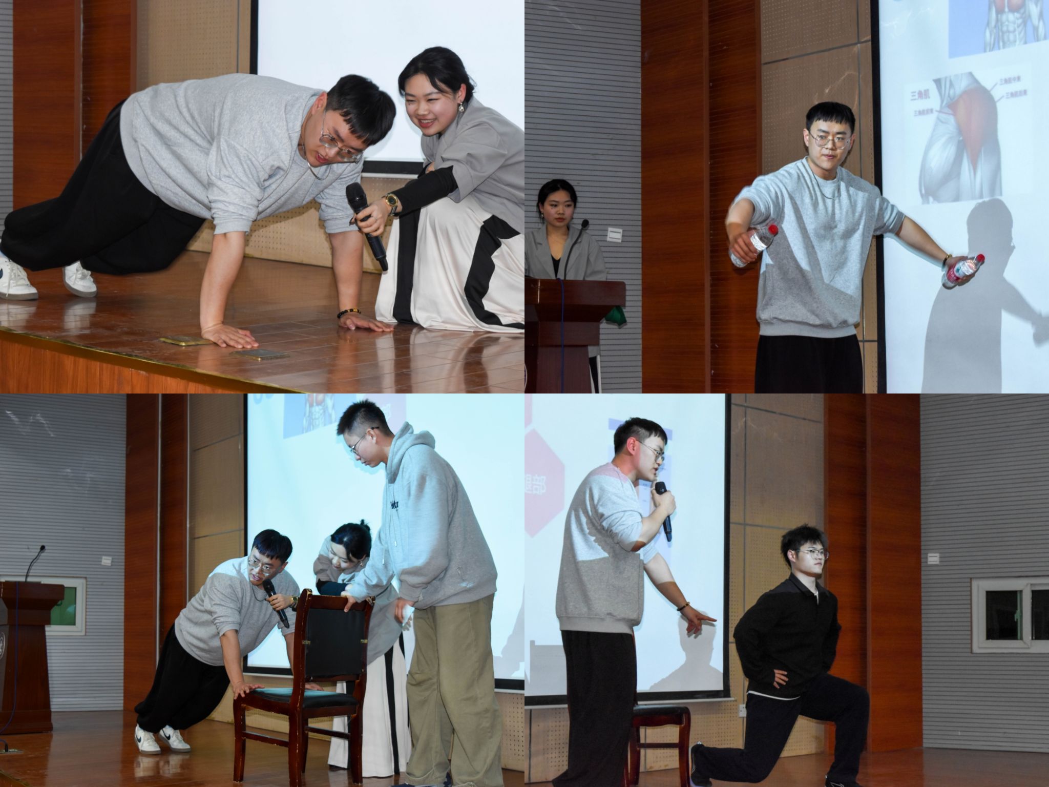 活动中,两位嘉宾采用“理论+情景模拟”的立体化教学模式,深入讲解运动损伤预防、训练周期规划等专业知识。生动的案例演示和即时互动,让同学们直观认识到不科学运动的潜在风险,并掌握规范动作要领。在问答环节,同学们踊跃提问,涉及饮食搭配、运动频率等实际问题,主讲人逐一耐心解答。活动尾声,多位学生主动参与回访,分享收获与感悟。