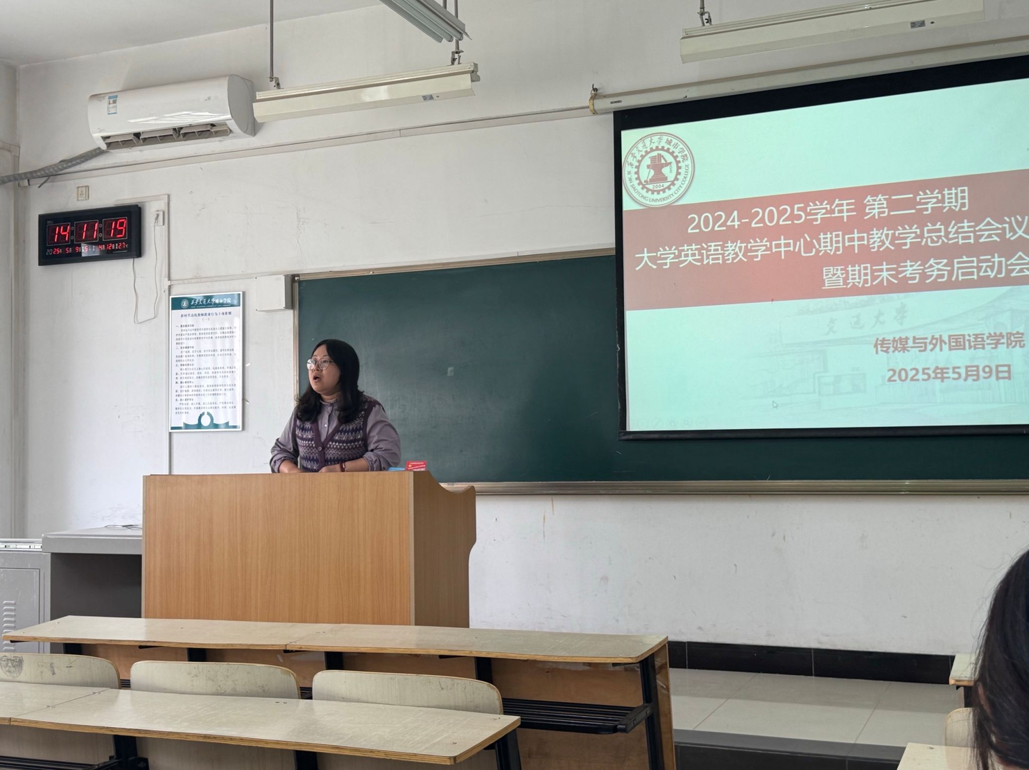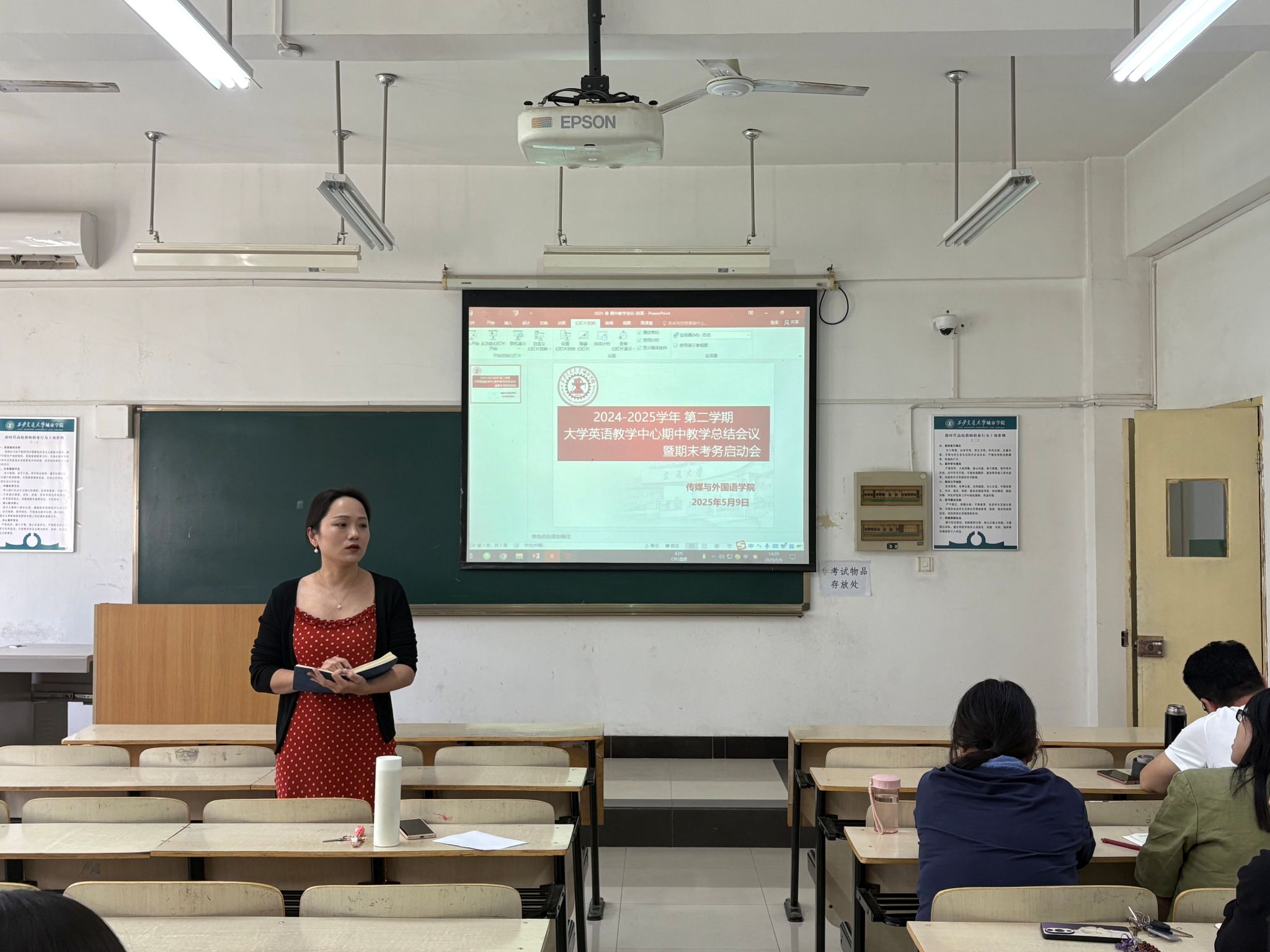 5月9日,传媒与外国语学院大学英语教学中心于教学楼B319召开期中教学总结会暨期末考务启动会。传媒与外国语学院副院长巫奕君、大学英语教学中心主任苏晓华及大学英语教学中心全体专兼职教师参加会议。