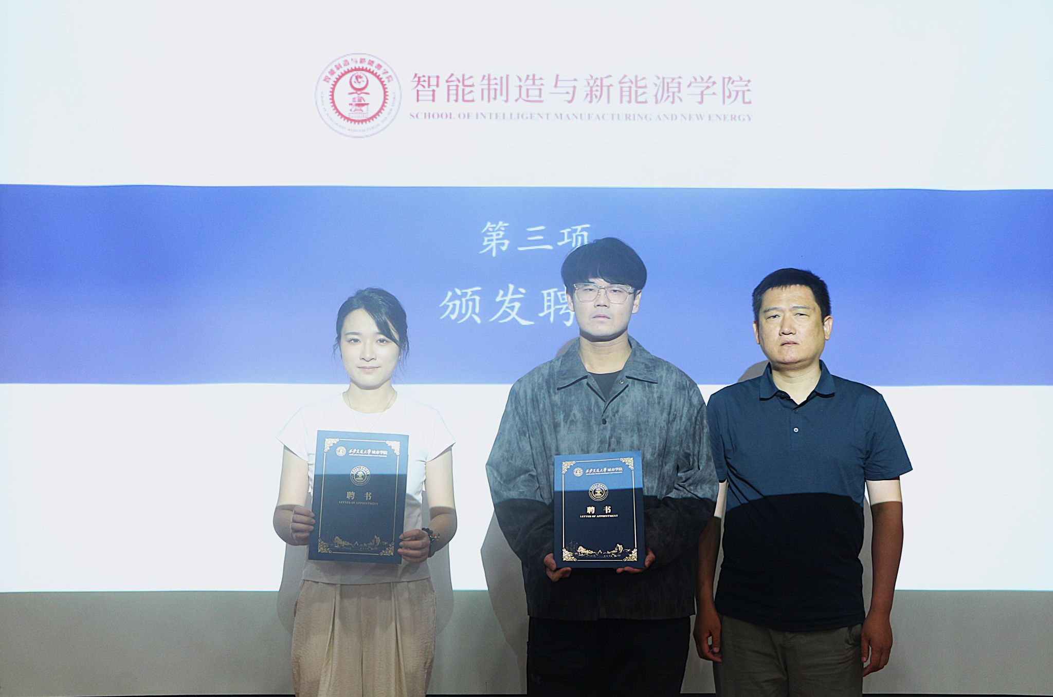 会议伊始,智能制造与新能源学院副院长竹有章对两位优秀校友的归来表示热烈欢迎。由牛海波院长向两位优秀校友颁发“西安交通大学城市学院一站式社区学生成长导师”聘书。