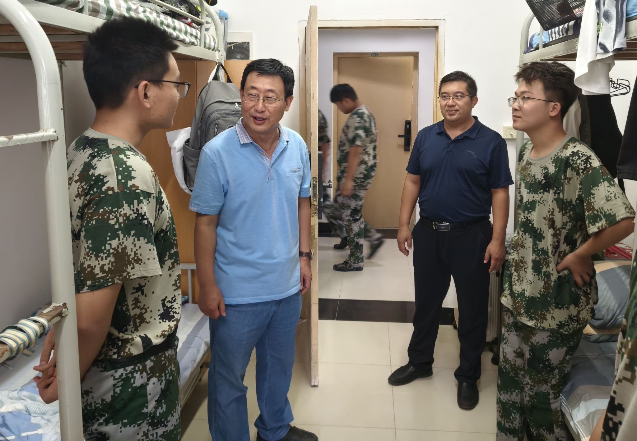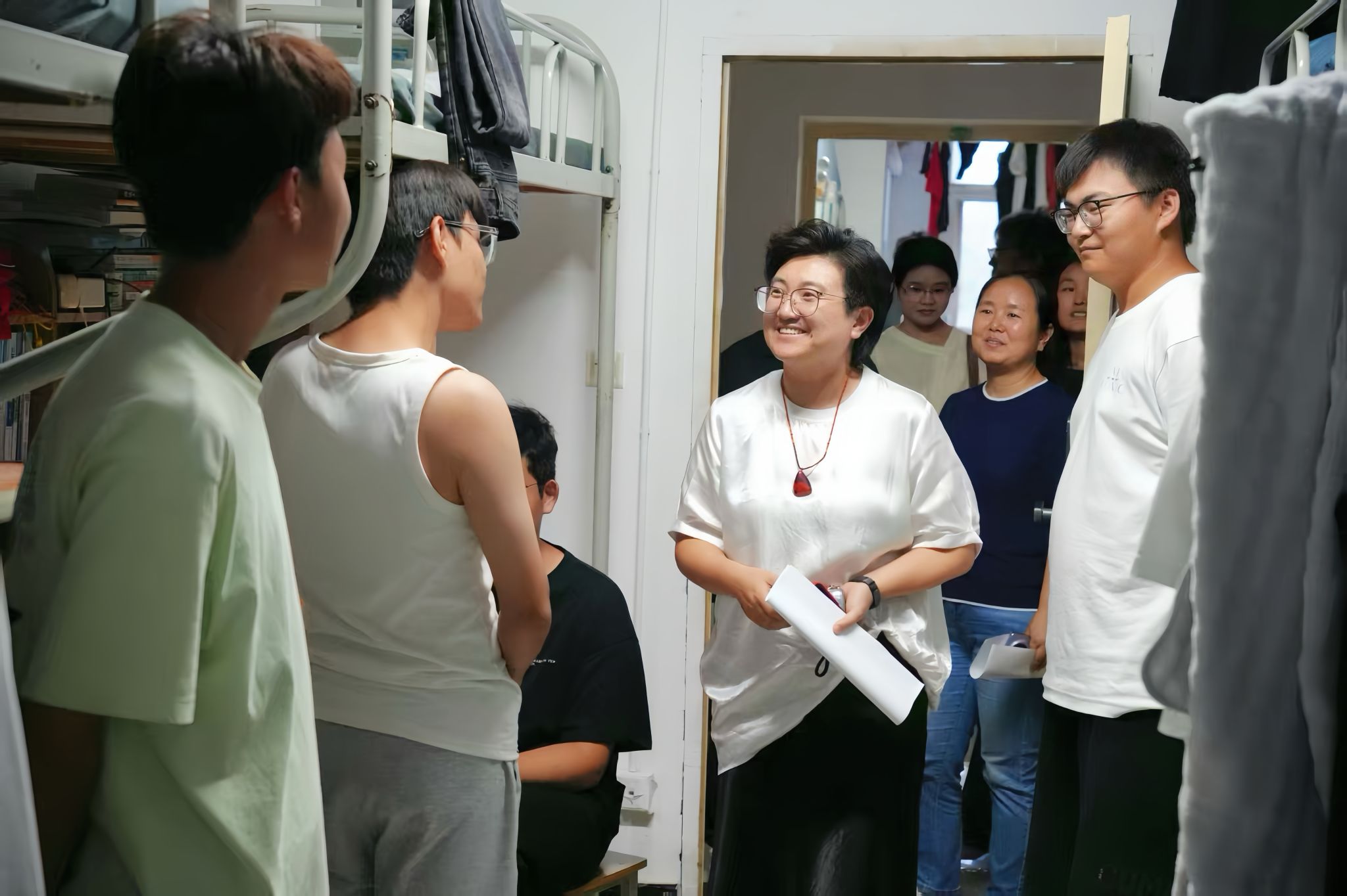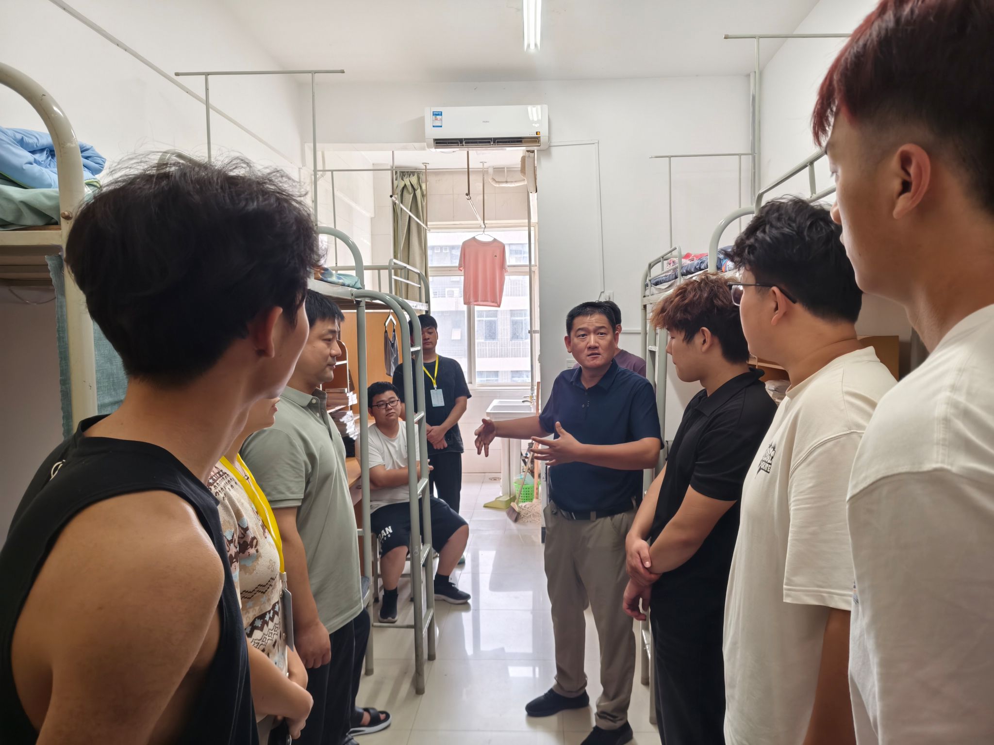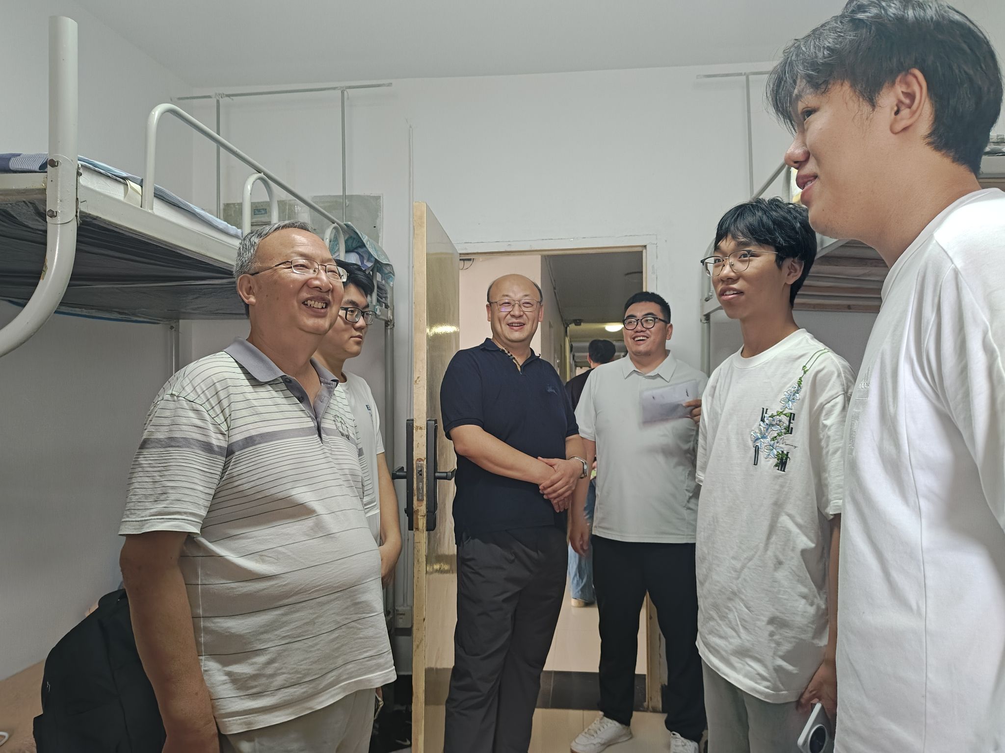 为切实了解2025级新生入校后的适应情况,将学院的关怀落到实处,8月24日下午,由智能制造与新能源学院院长牛海波带队,副院长王国平,副院长兼新能源系主任竹有章,实验室主任赵云芳,院长助理韩星星,院长助理门静,院长助理兼学生科科长王丽丽,2025级新生辅导员张哲源一行共同前往新生宿舍开展走访慰问,为初入校园的新同学送上第一份温暖与关怀。