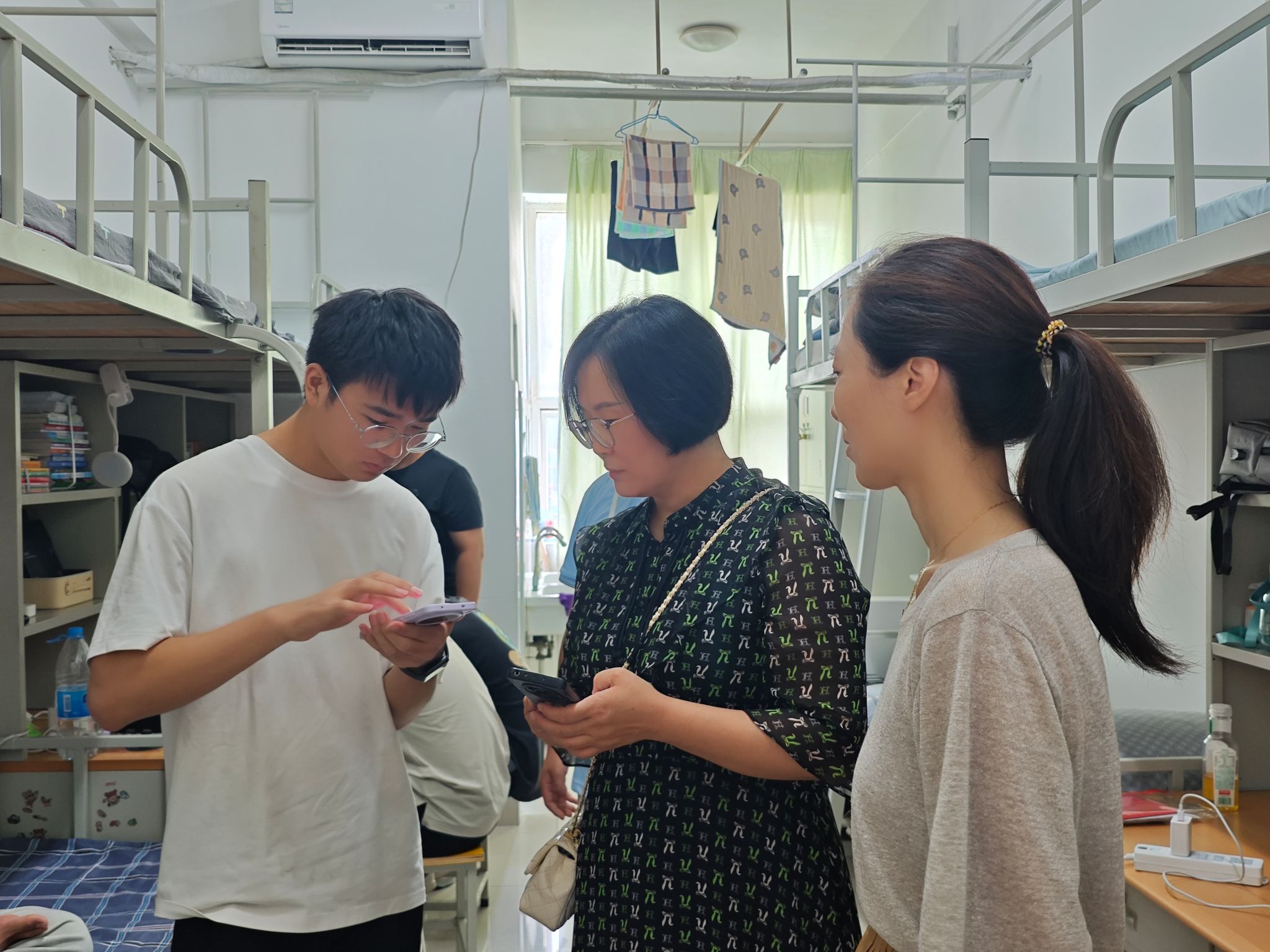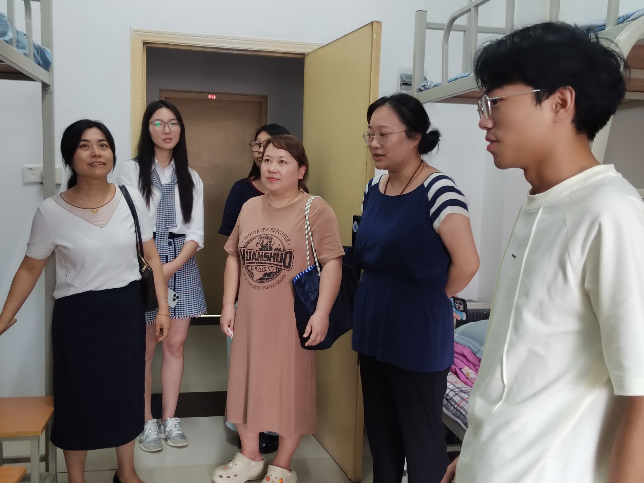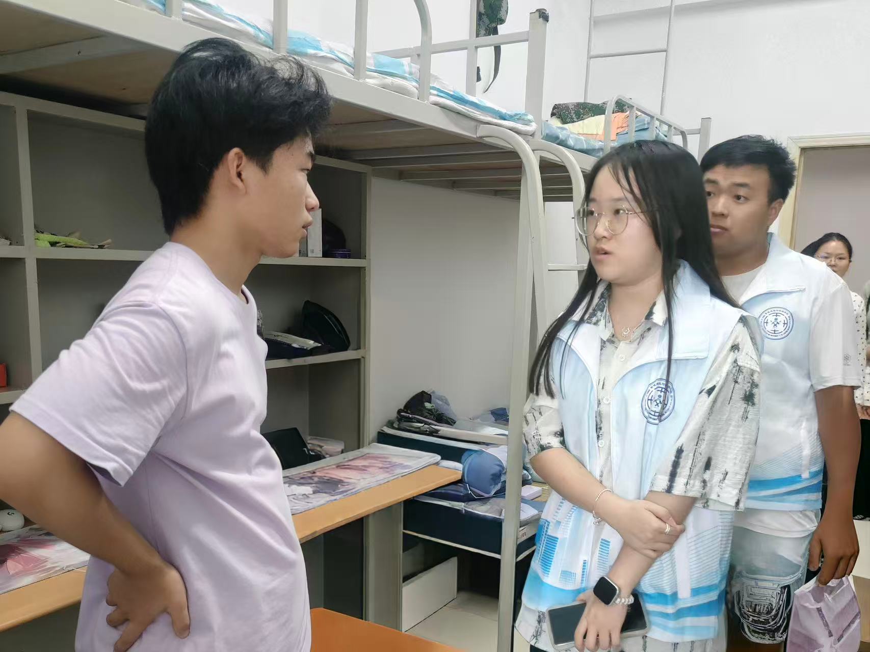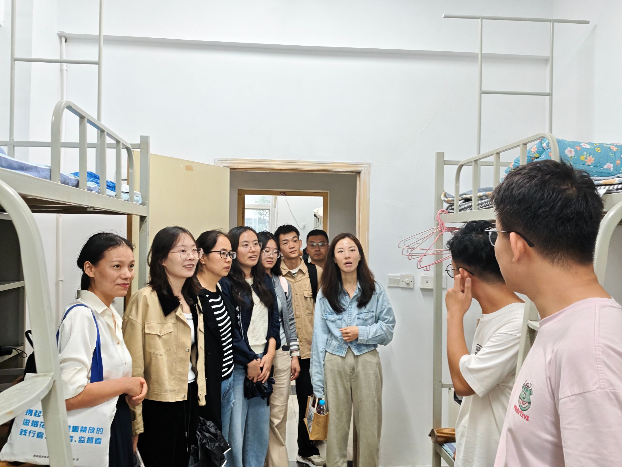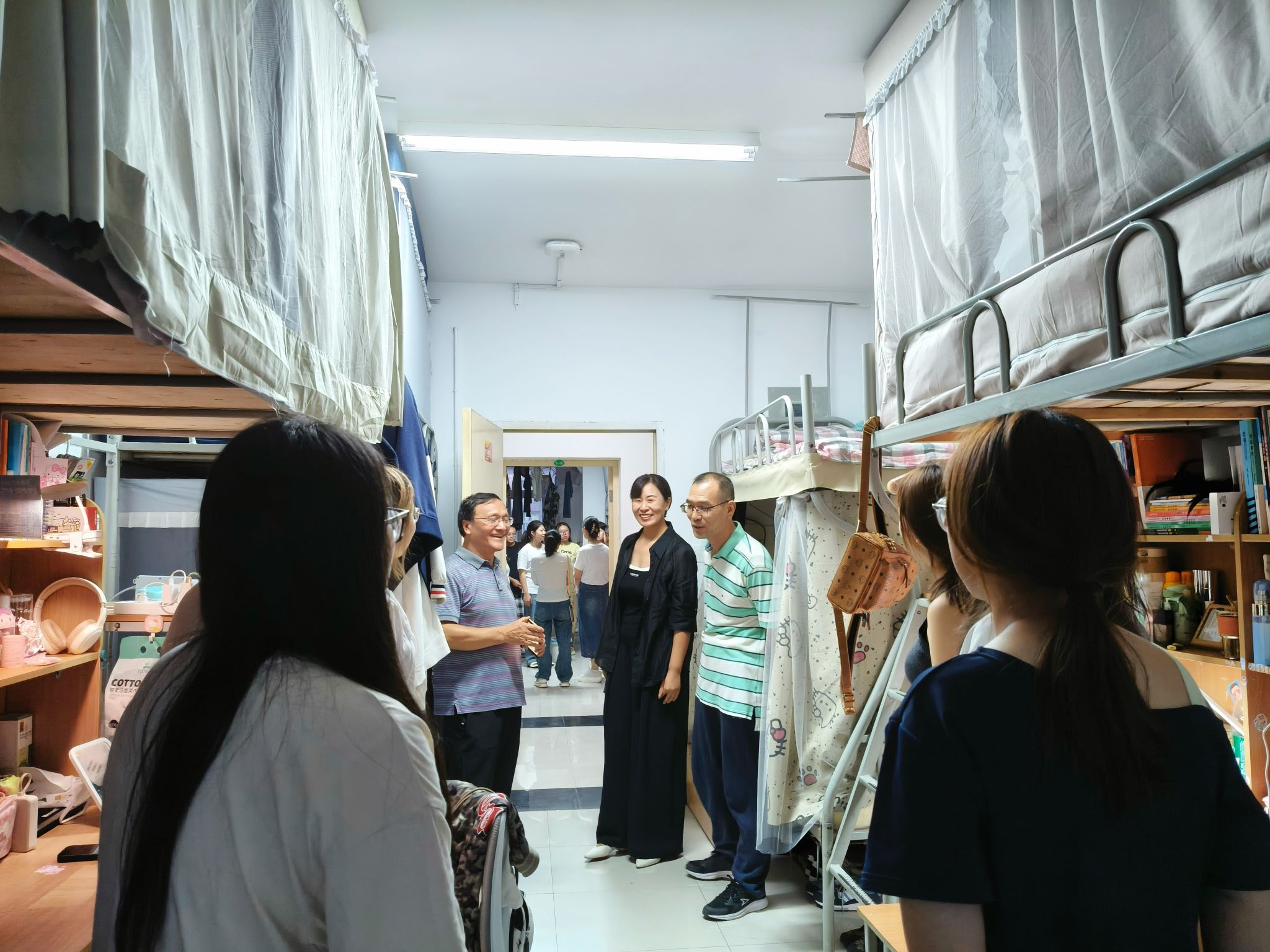 走访过程中,学院领导与老师们亲切走进每一间宿舍,与新生们面对面交流。在学习方面,详细询问大家对课程安排的了解程度、是否适应大学学习节奏,并叮嘱新生要尽快制定学习计划,提前做好学业规划;在生活上,仔细查看宿舍居住环境,关心同学们的饮食、作息情况,耐心解答大家关于宿舍设施使用、校园生活服务等方面的疑问;同时,老师们还叮嘱同学们要注意宿舍安全与卫生,与室友友好相处,共同营造温馨和谐的宿舍氛围。