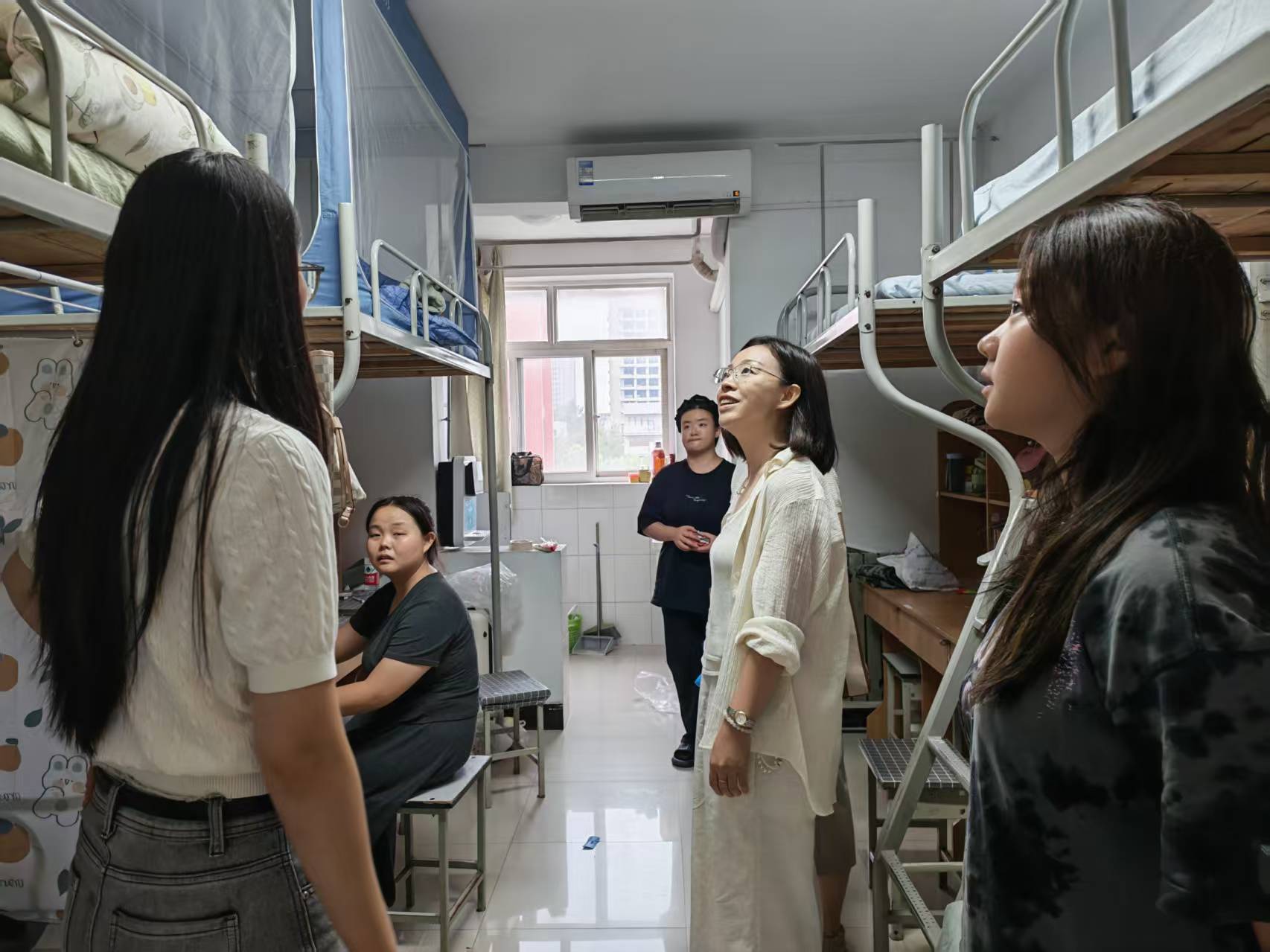 8月24日下午,学院组织开展新生宿舍走访。姚全珠院长、教师及新生辅导员一行深入新生寝室,问候新同学,了解入住情况与实际需求。老师们嘱咐大家注意身心健康,学会压力管理,并细致检查宿舍安全与卫生,提醒遵守住宿规定,鼓励同学之间团结友爱,共同营造良好的学习和生活氛围。