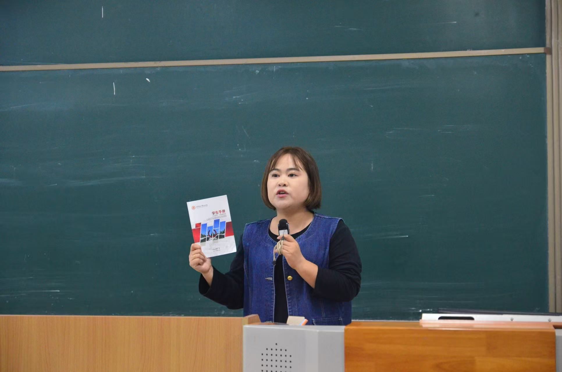 康璐主要就学生学籍管理规定,学位条例实施细则,课外学分管理等进行非常细致的讲解,并针对新生容易出现的问题进行了强调和解答,让学生掌握日常管理、公寓管理、学业管理、纪律处分、学生资助等方面的相关规定,充分了解“大学说明书”、用好“大学说明书”。
