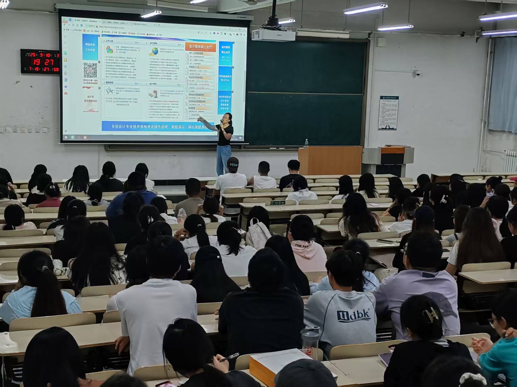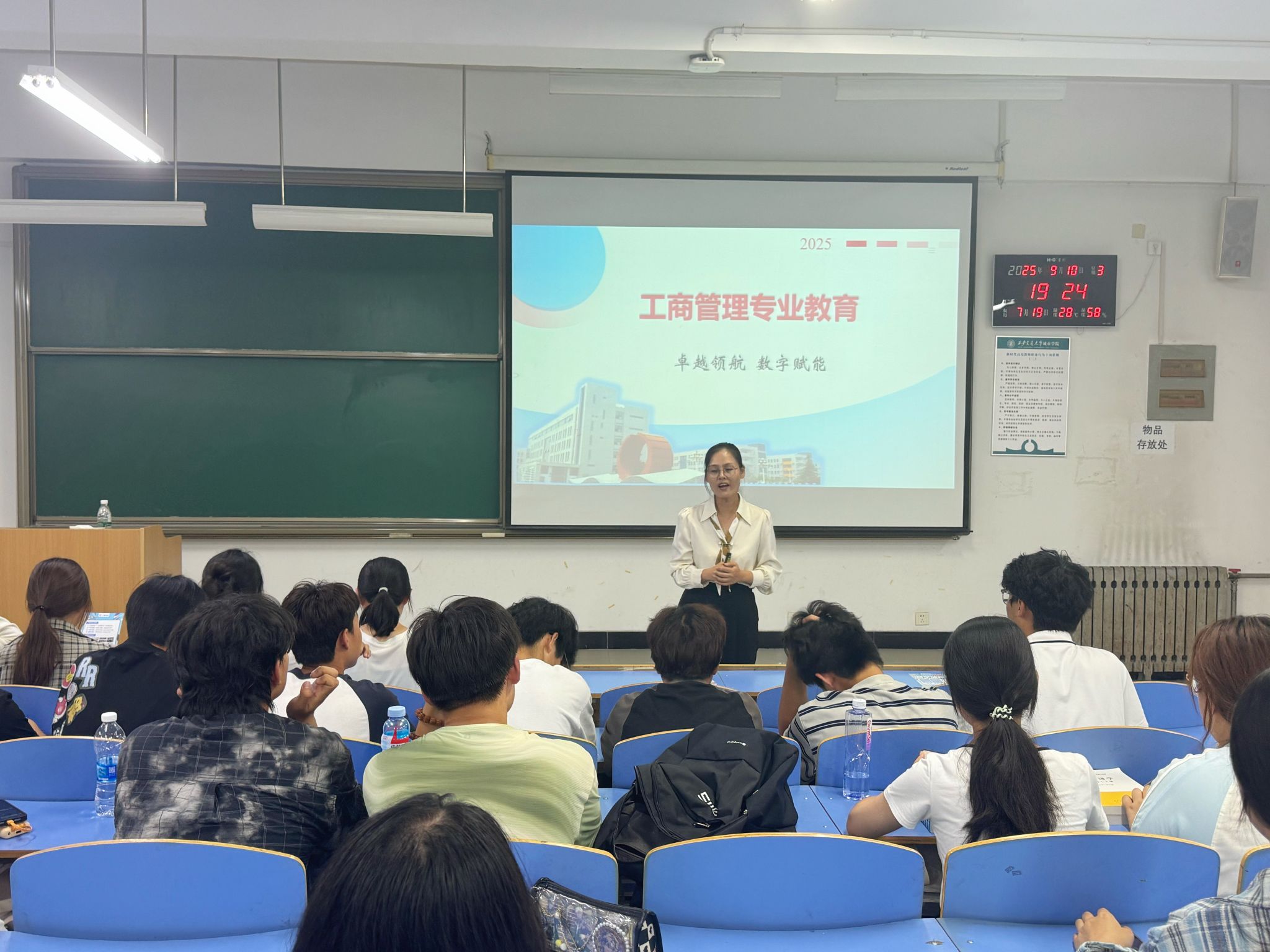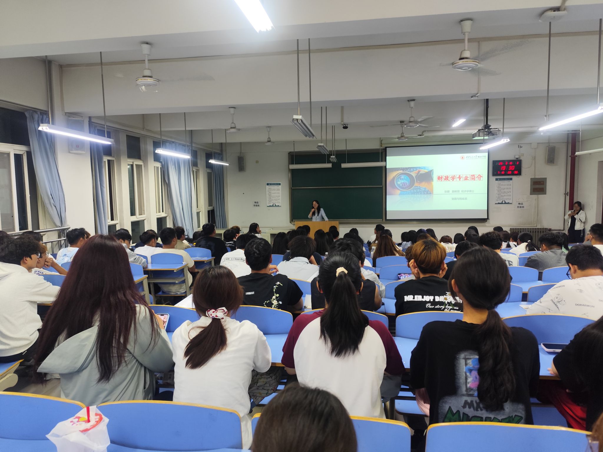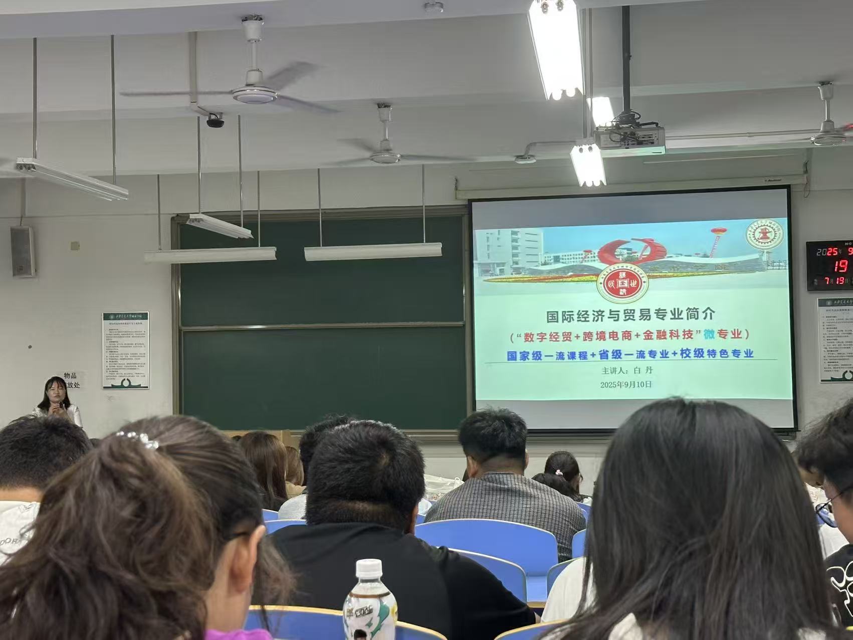 ——专业深耕:分领域细解,明晰成长路径。在分专业认知教育环节,各专业教师代表结合行业趋势与课程特色,为新生量身定制“专业指南”。会计学专业教师以“运荔枝的人——李善德”的历史案例为切入点,从“是什么、学什么、怎么学、干什么”四维度展开。工商管理专业教师聚焦“智慧项目管理” 方向,围绕数字化管理工具与项目全生命周期管理展开讲解。国际经济与贸易专业教师突出“数字经贸 +智能金融与财税”特色,详解跨境电子商务理论与实务、商务智能与数据挖掘等课程,让新生清晰地看到专业与数字经济时代的深度契合。经济学类专业教师则从宏观与微观双视角,解读金融科技、智慧财税等交叉方向的学习内容。