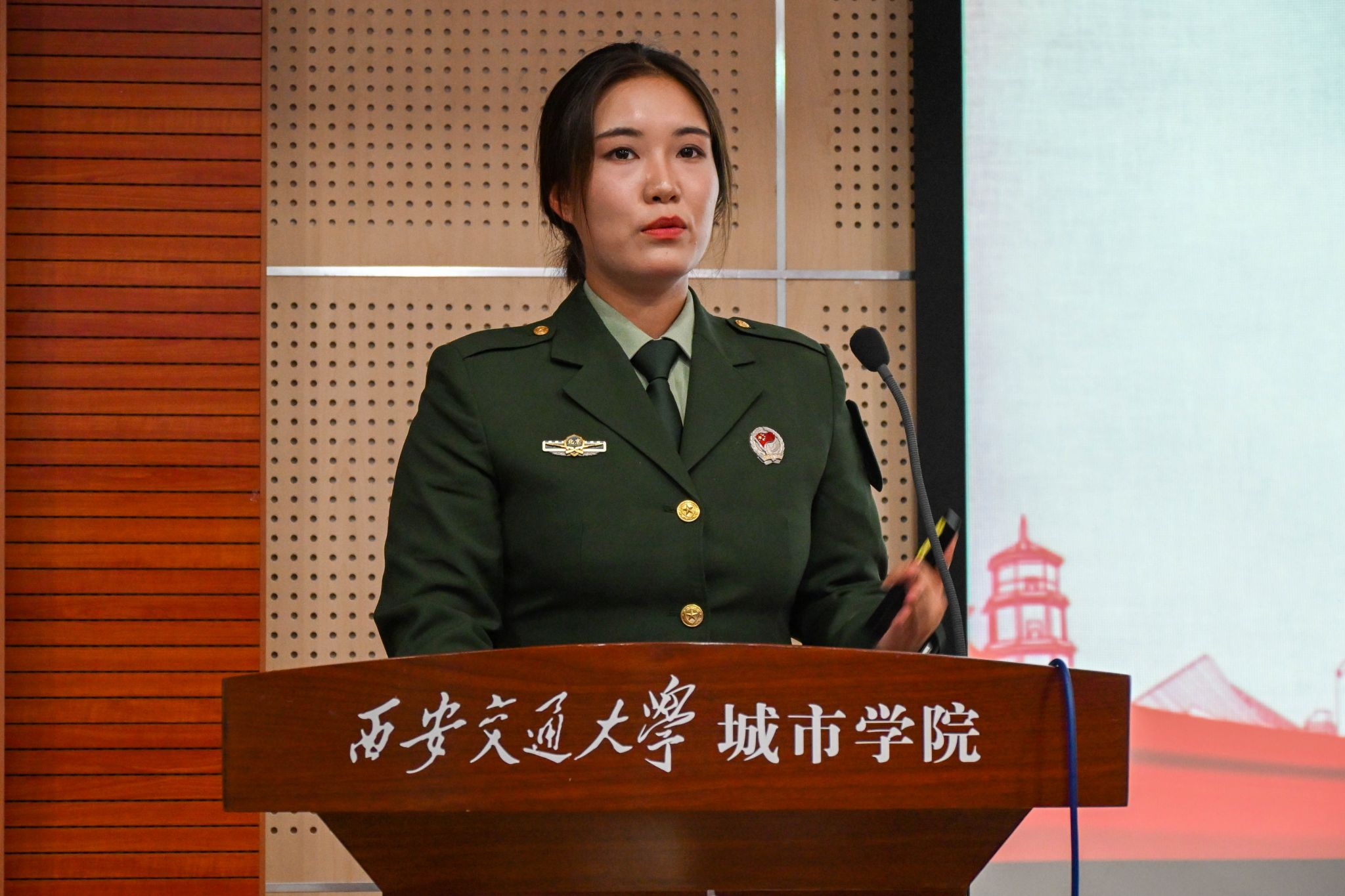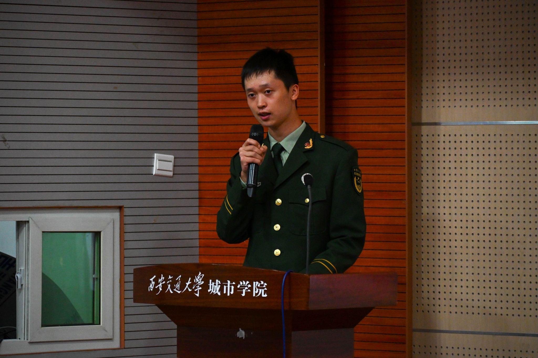 9月18日,第二十六期“城市之光”讲坛在F100举行,本次讲坛以"戎装虽卸,使命不改"为主题,通过退役大学生士兵的军旅故事,引导青年学子在历史坐标中锚定青春航向。四位曾服役于解放军和武警部队的优秀代表,用热血与忠诚诠释了"退伍不褪色"的军人本色,为现场师生上了一堂生动的爱国主义教育课。