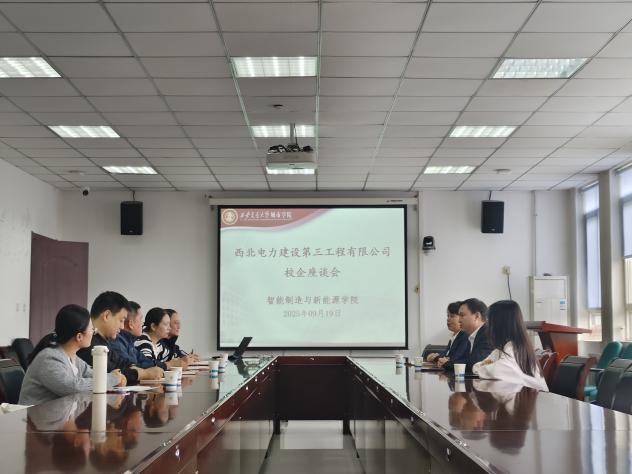 为深入贯彻落实国家关于深化产教融合的战略部署,推动教育链、人才链与产业链、创新链有机衔接,9月19日,智能制造与新能源学院与西北电力建设第三工程有限公司举行校企座谈会。智能制造与新能源学院院长牛海波、院长助理门静、实验室主任赵云芳,电气信息学院院长助理廉宇婷,西北电力建设第三工程有限公司总工程师杨斌、人力资源部培训负责人白莹、招聘负责人邓乔予等共同出席了本次座谈会。会议由智能制造与新能源学院院长助理王丽丽主持。