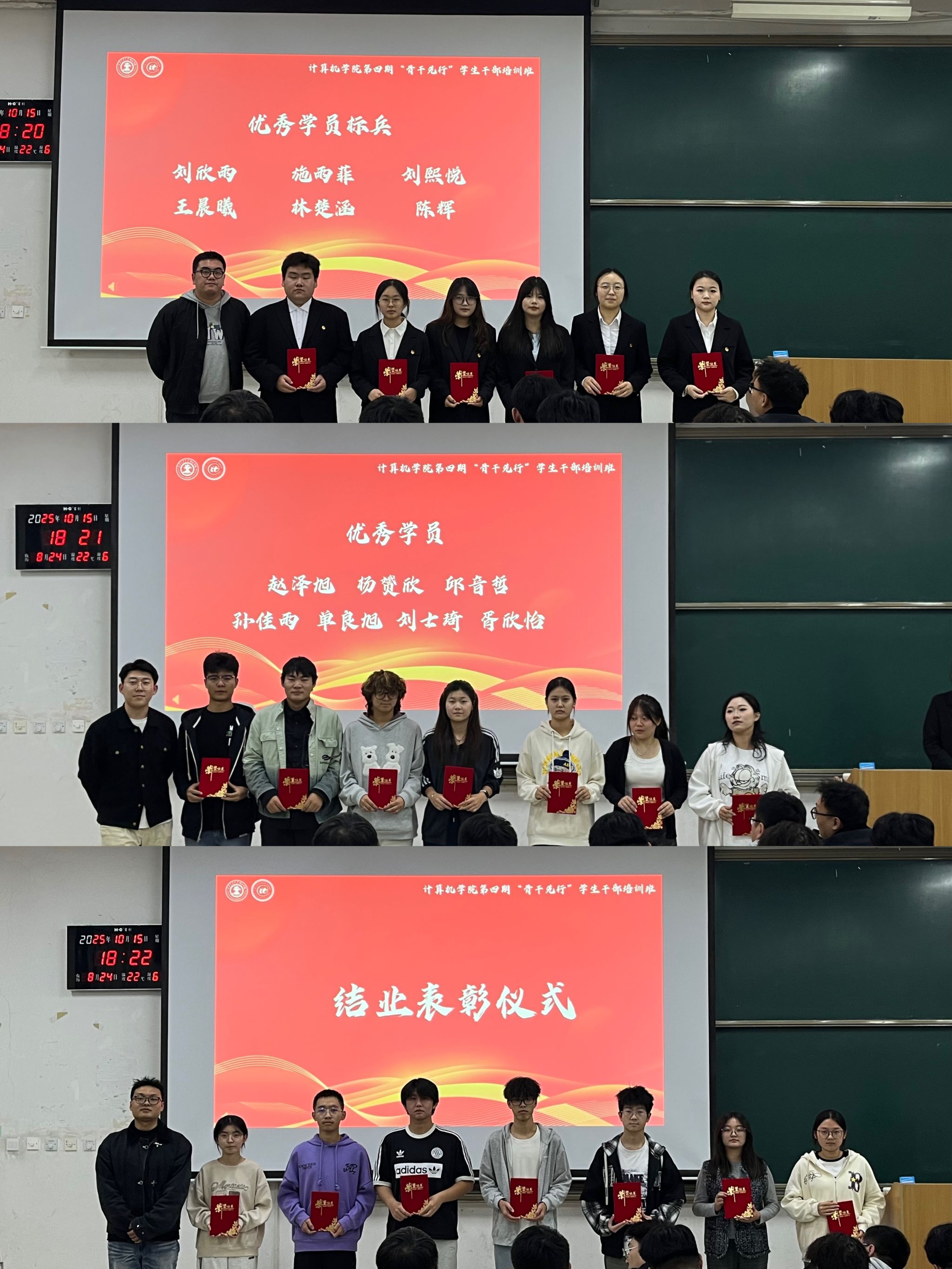 为全面提升学生干部的综合素养与履职能力,进一步赋能学院发展、汇聚青春智慧,计算机学院于10月13日、14日开展第四期“骨干先行”学生干部培训班。本次培训面向2025级近百名新生班级骨干,聚焦“思想引领、团务指导、心理预防、学风建设、日常事务、创新创业”六大模块,着力塑造学生骨干坚定的理想信念、开拓精神与实践能力。